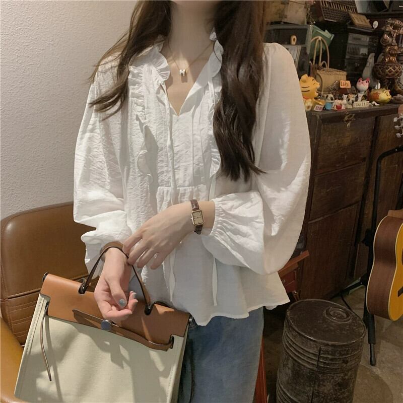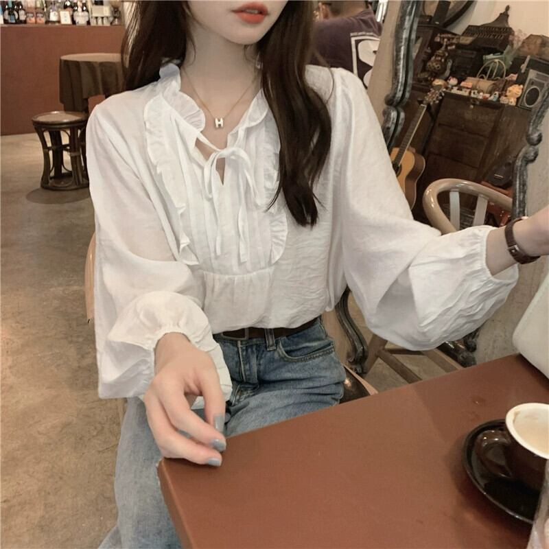 白い長袖シャツの女性のデザインニッチ2023秋の新しいフレンチスタイルの優しい気質のハイエンドトップ ロング ホワイト オータム 秋物 857164667700635