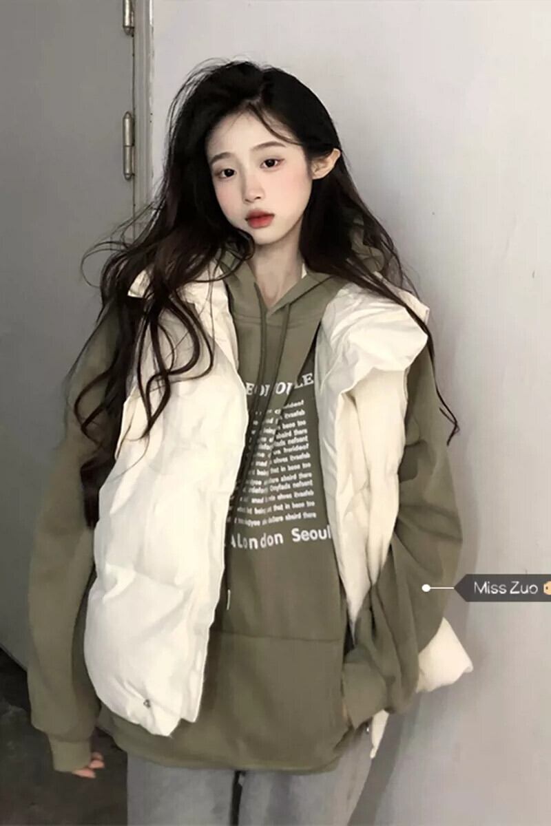 ホワイトコットンベストジャケット女性の冬肥厚2023新しいスタイルアウターレイヤリングベストネットセレブベスト ウィンター 冬物 8571630887611040
