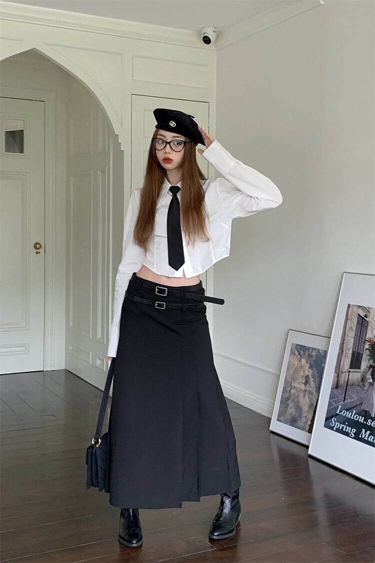 色:白のシャツ,青いシャツ,黒スカート,グレースカート