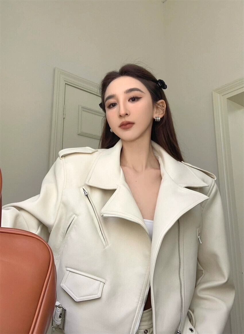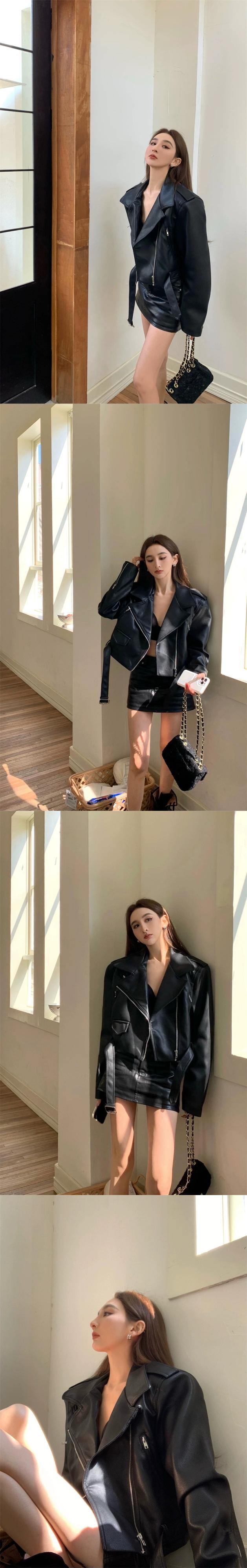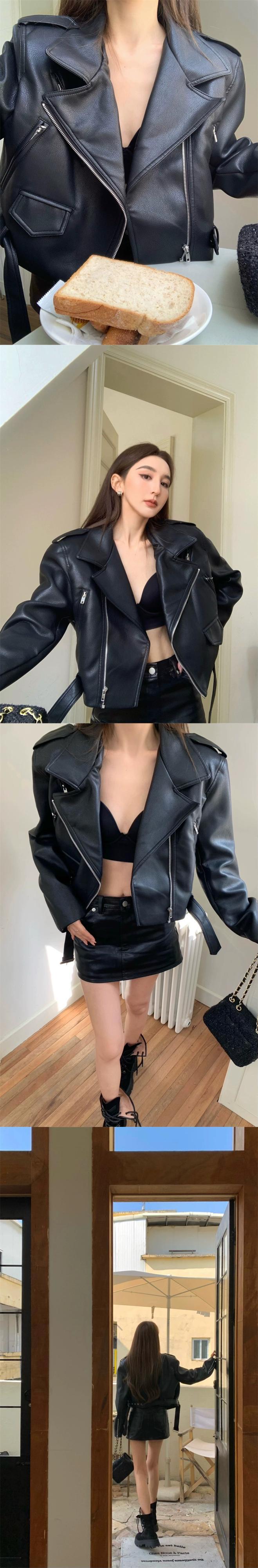 黒革のジャケットの女性の秋と冬 2023 新しい香港スタイルのレトロなオートバイの摩耗ハイエンドの小さな pu レザージャケット ブラック オータム 秋物 ウィンター 冬物 8571639018675481