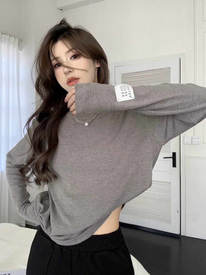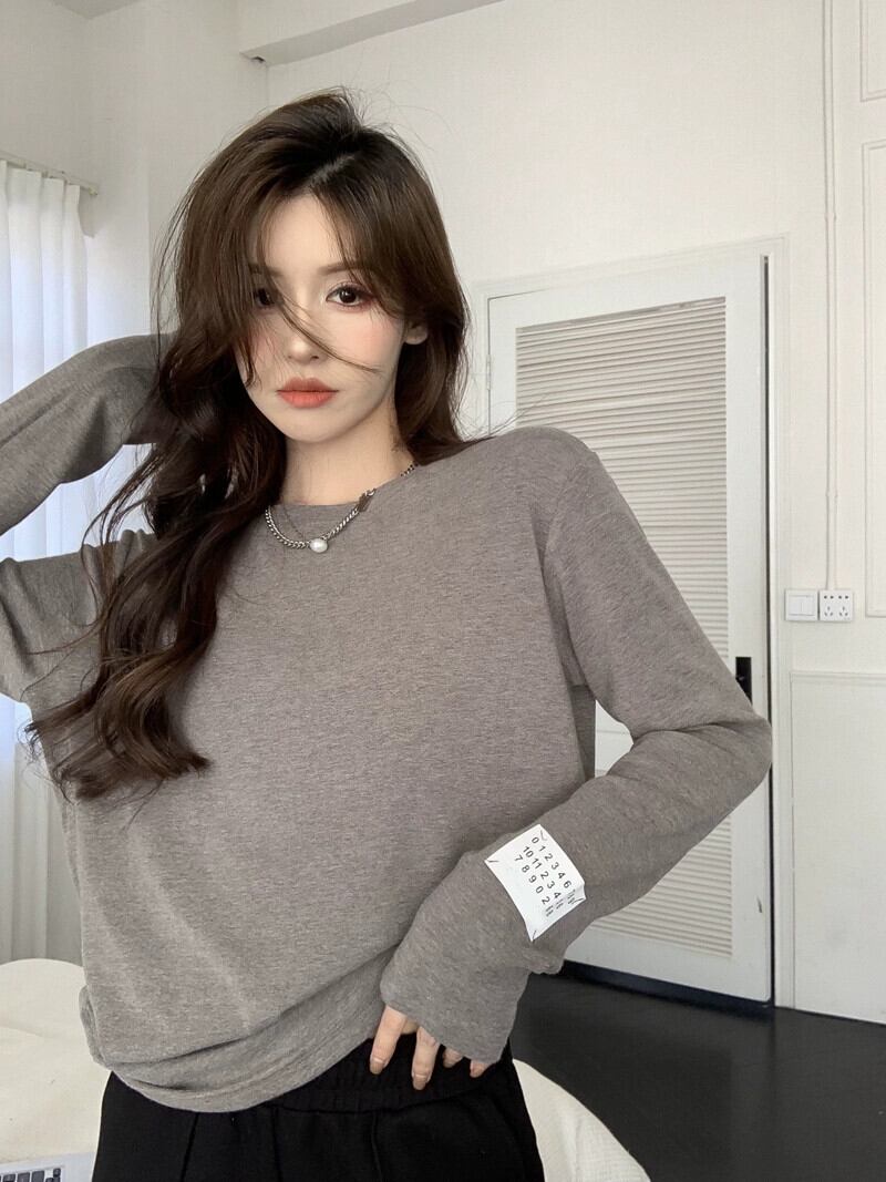 グレー長袖 Tシャツ女性の秋のハイエンドボトリングシャツ 2023 新しい香港スタイルのシックなルーズトップ ロング オータム 秋物 8571638284676854
