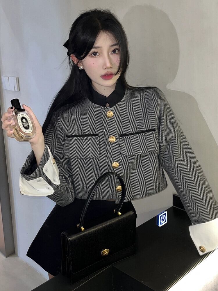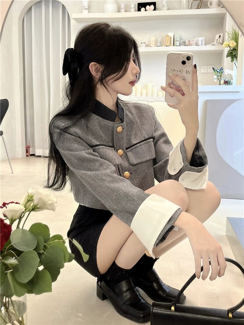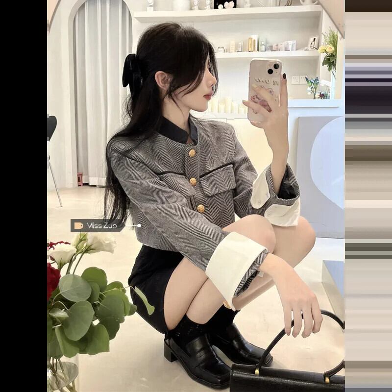 ツイード小さな香りのジャケットの女性の秋 2023 新しいスタイルフランスの気質社交界ハイエンドグレーショートトップ オータム 秋物 8571699407187594