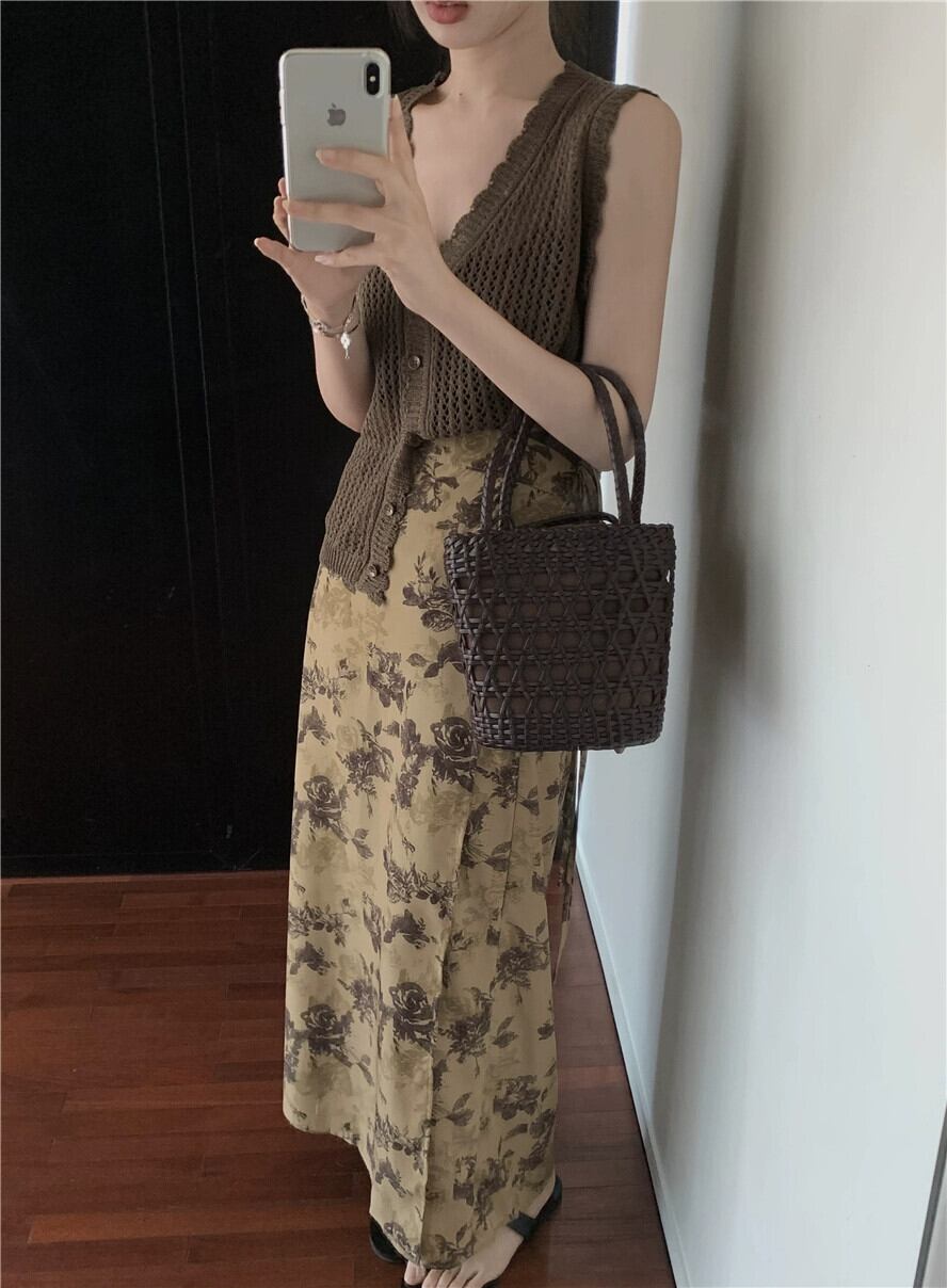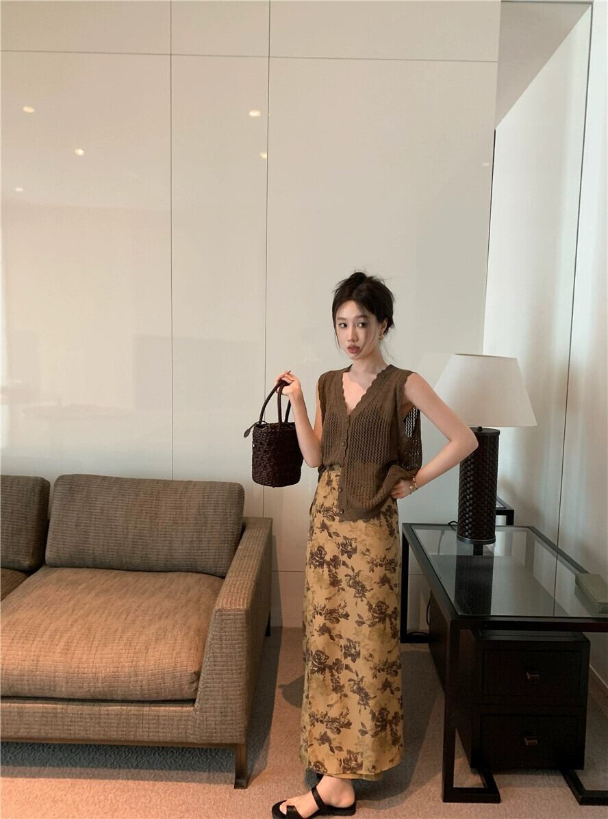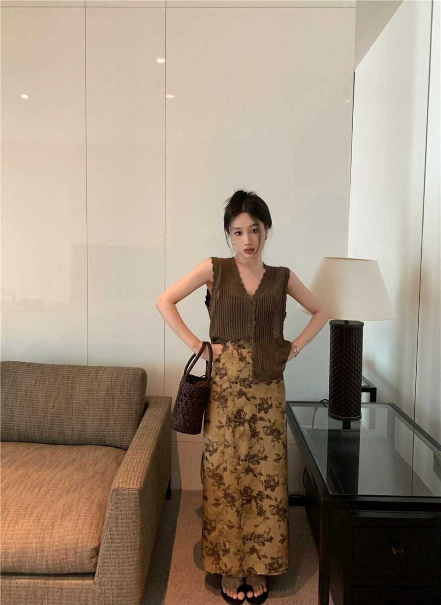 花柄スカート レディース 夏の新作 ハイウエスト Aラインスカート フレンチスタイル ハイエンド ミドル丈 ヒップカバーロングスカート サマー 夏物 8571648418171438