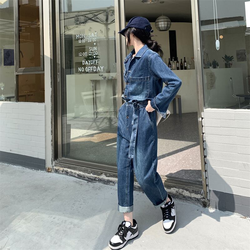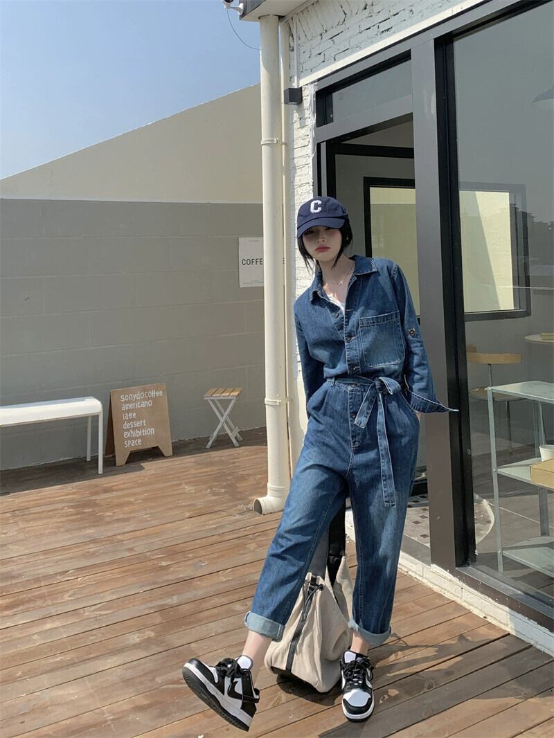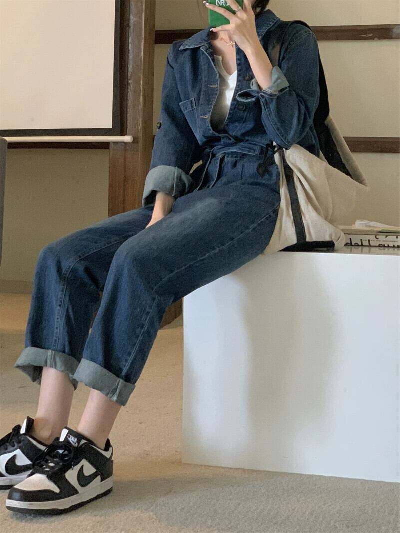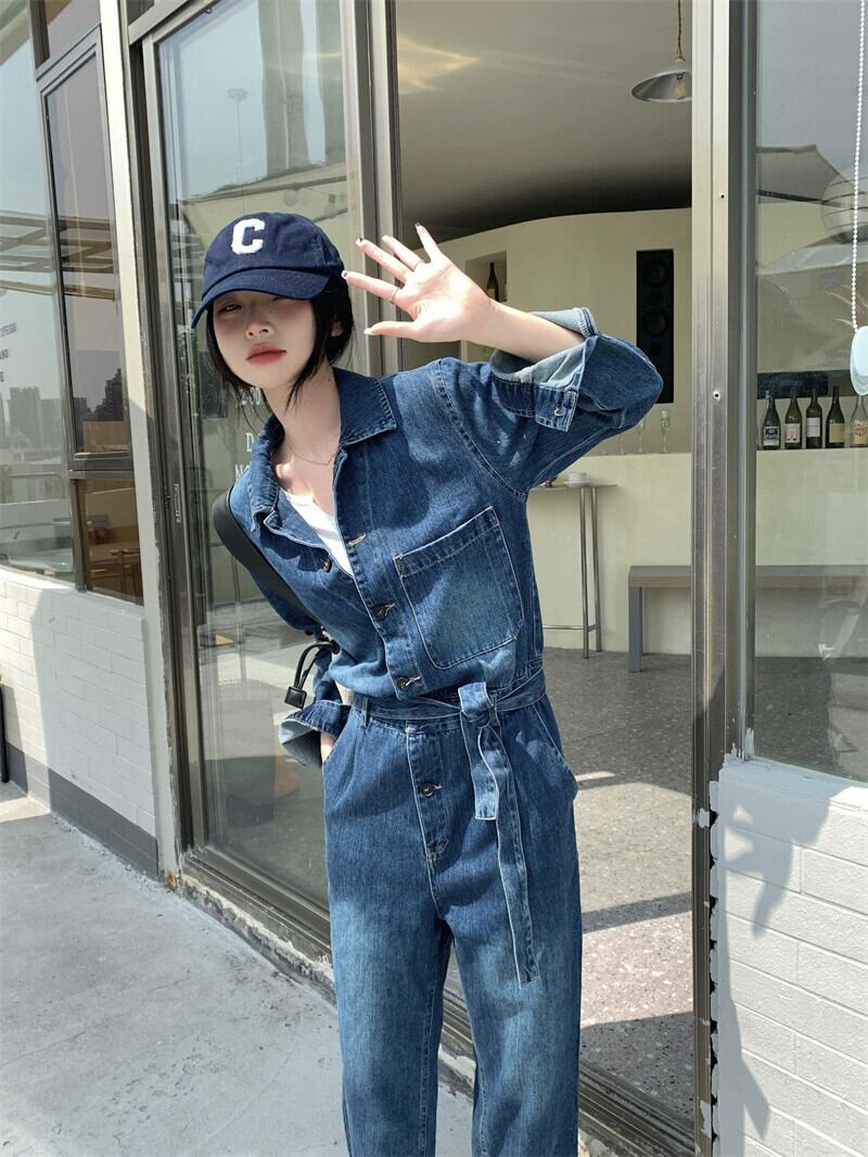デニムジャンプスーツの女性の 2023 秋の新ファッションハイエンド作業着ジャンプスーツ気質ジャンプスーツ女神スタイル オータム 秋物 8571688436689856