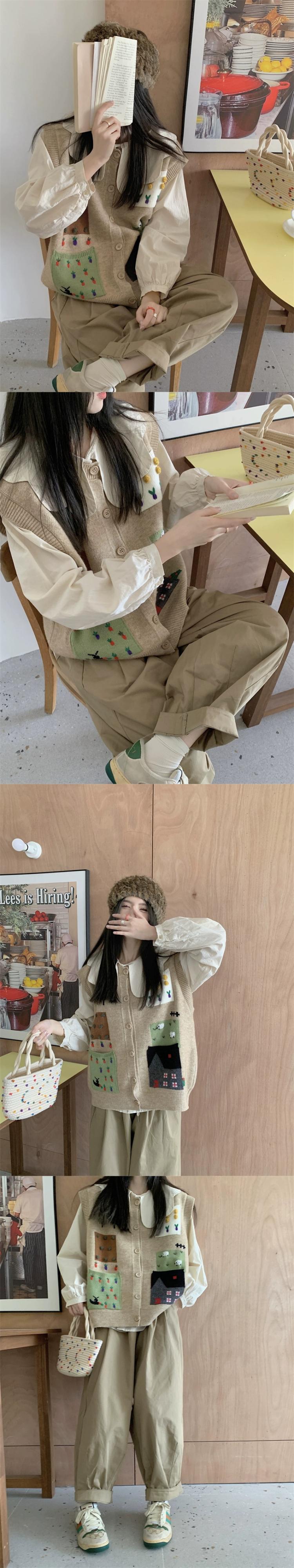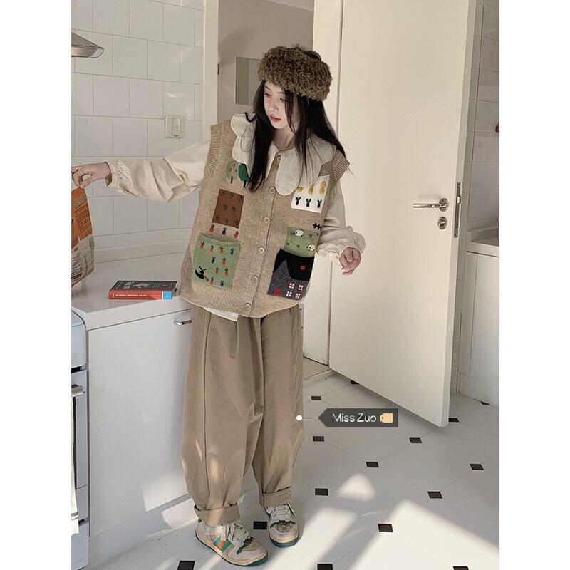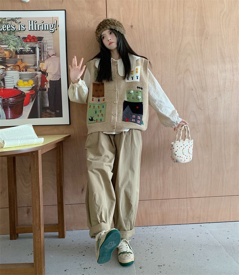 色:クラウドシャツ,カーディガンベスト,太い脚のパンツ