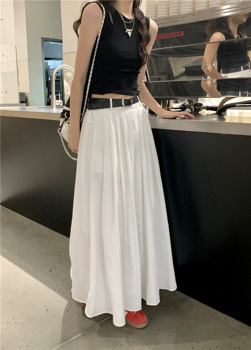 白い傘スカートスカート女性の夏のハイウエスト A ラインスカート 2023 新しいスタイルカバー腹気質ロングスカート足首まで ハイウェスト ホワイト サマー 夏物 Aライン 8571699070002432