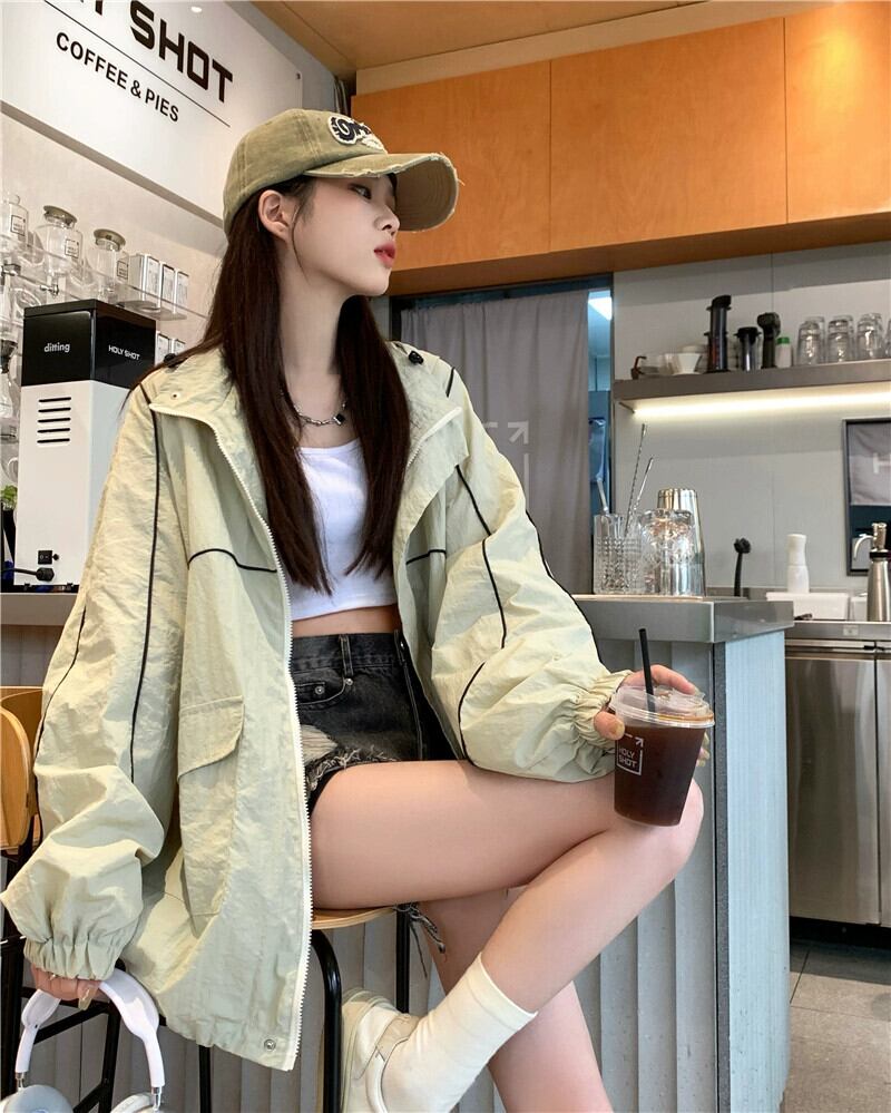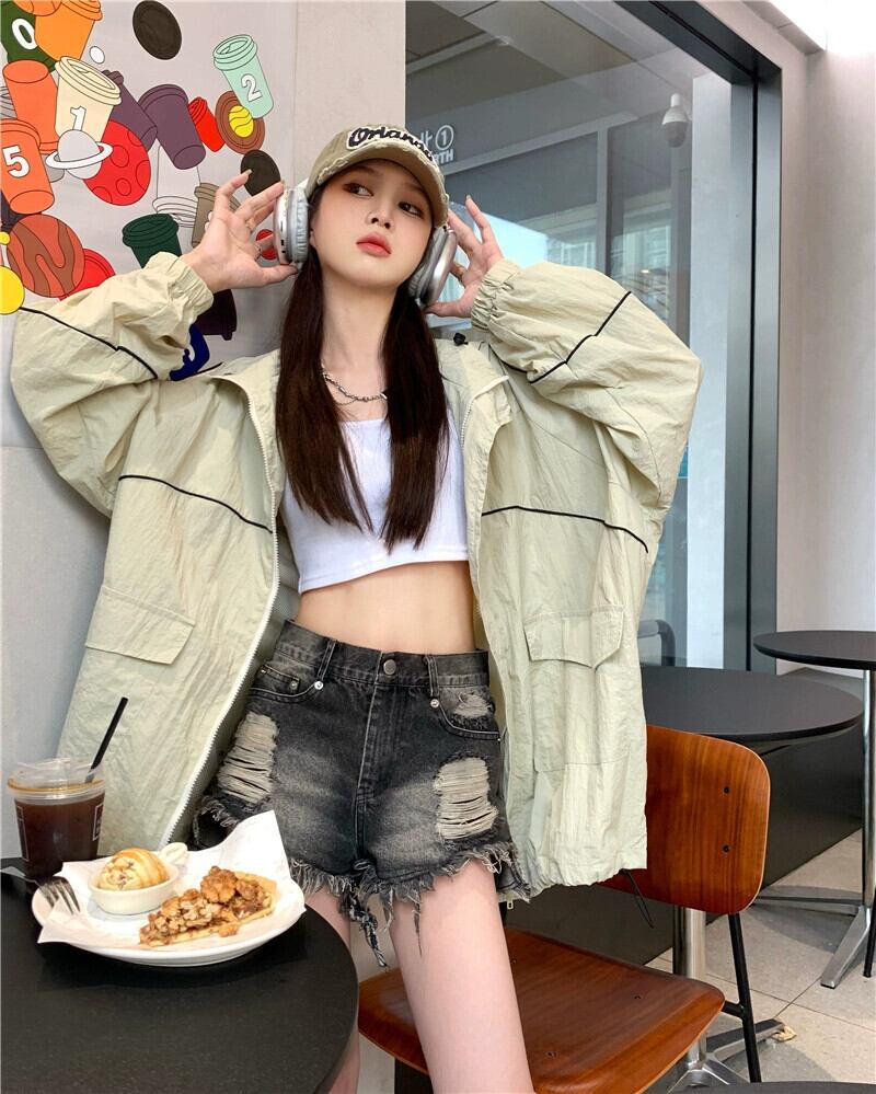 カーキカジュアル日焼け止めジャケット女性春 2023 新しいアメリカンレトロな小さなハイエンドストリートトップ スプリング 春物 8571638473220
