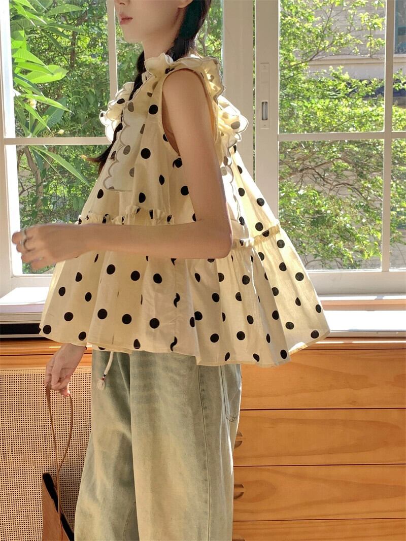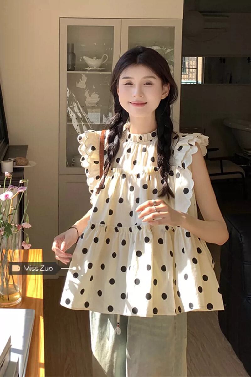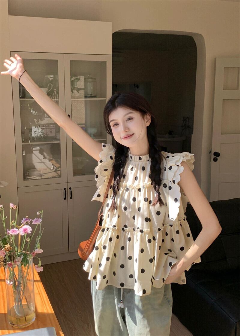 Feifei スリーブドールシャツトップス女性の夏 2023 新スタイルフレンチ甘い年齢を軽減する美しい小さな水玉シャツ 大人ガーリー スウィート キュート カジュアル サマー 夏物 8571674581114268