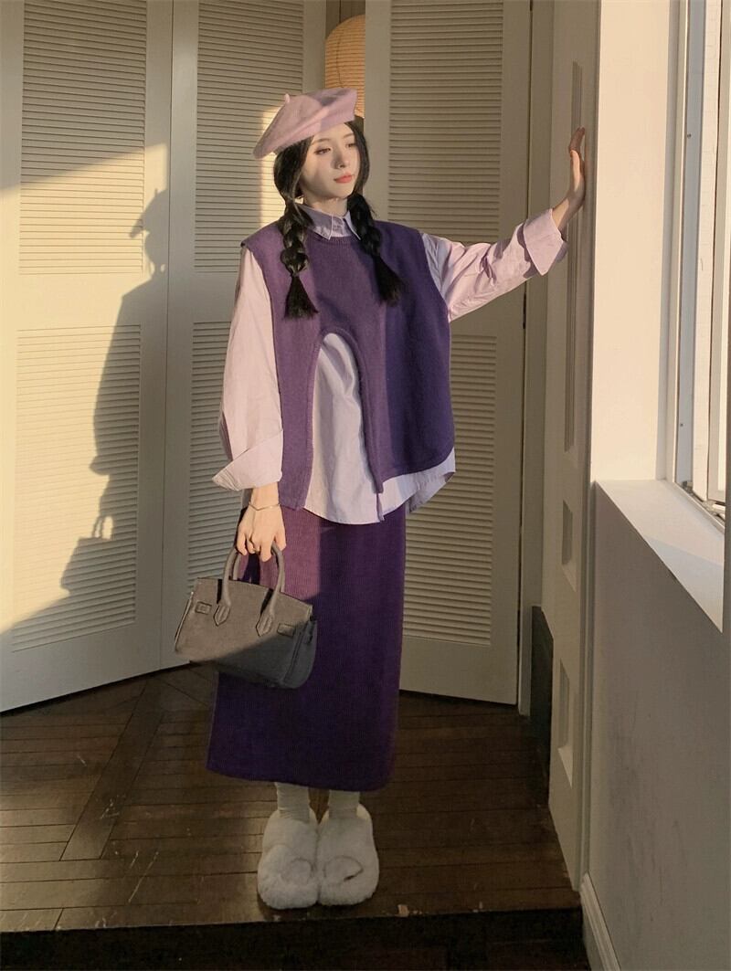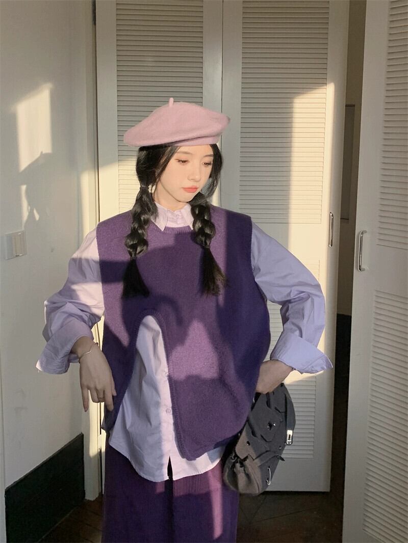 スタイルニットセーターベスト女性の初秋シャツレイヤードベストベストインターネットセレブスタイルベスト レッド オータム 秋物 857166250015944
