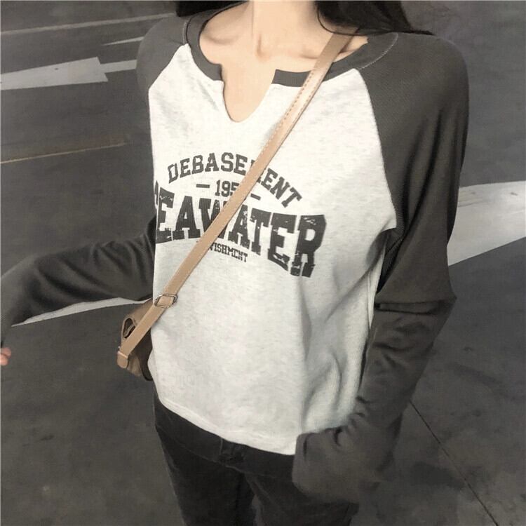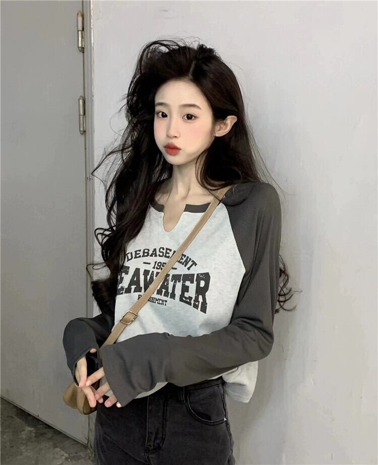 アメリカンレトロ長袖Tシャツレディースデザインニッチ2023秋新スタイルスタイルインナーレイヤリングトップ ロング オータム 秋物 8571699455642503