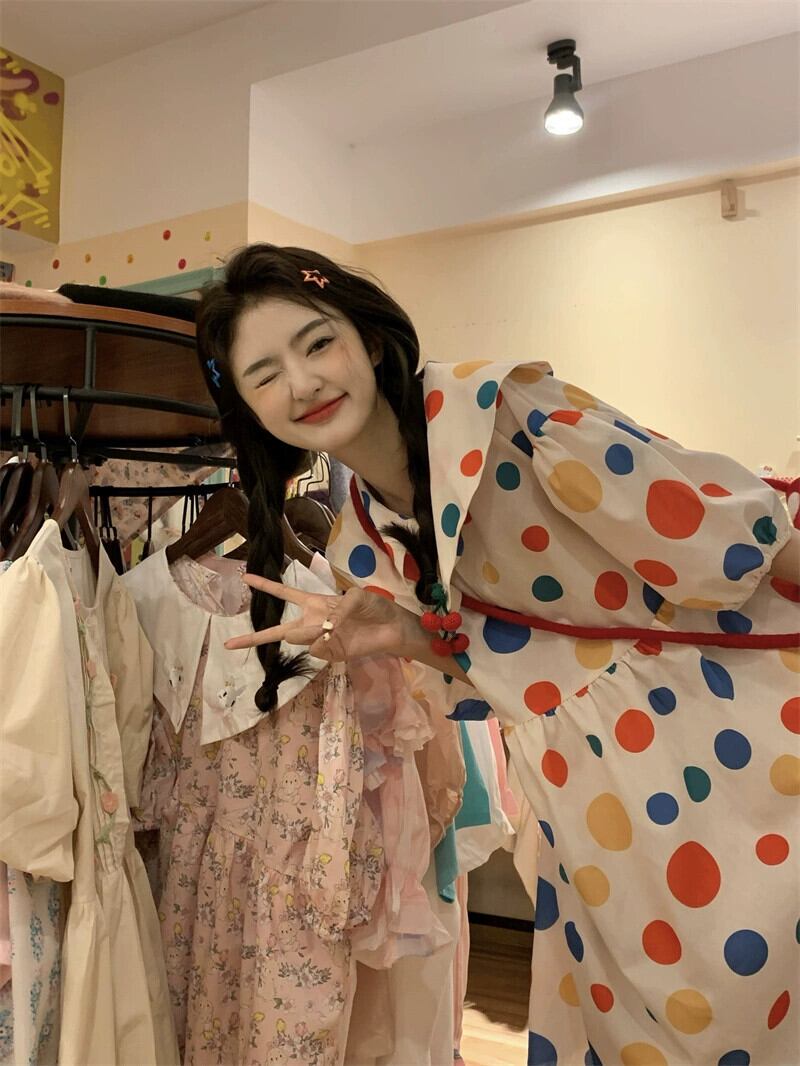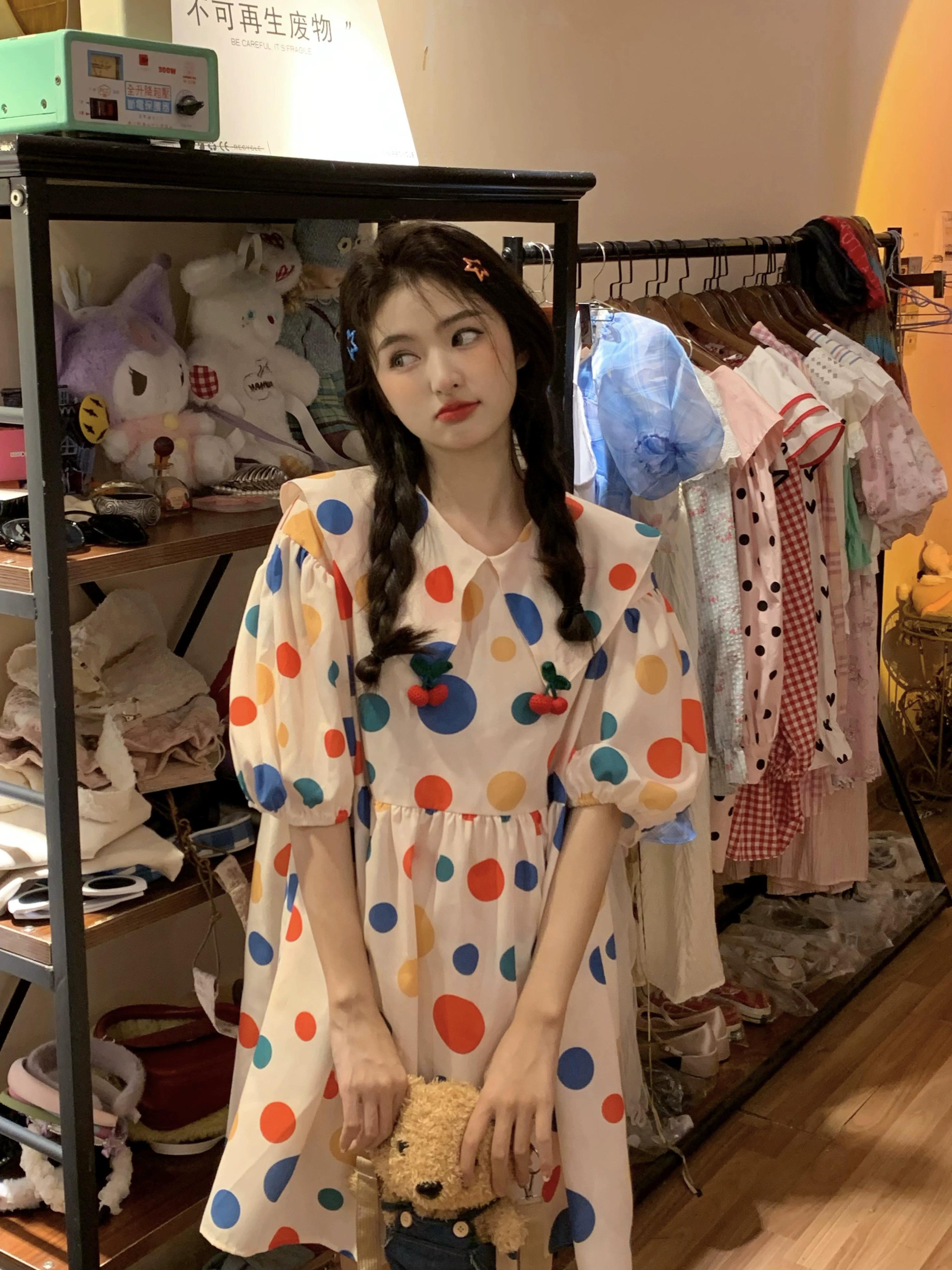 人形の襟水玉ドレスの女性の夏 2023 新しい甘い初恋プチショートスカート腹をカバーし、年齢を減らす 大人ガーリー スウィート キュート カジュアル サマー 夏物 8571652699275882