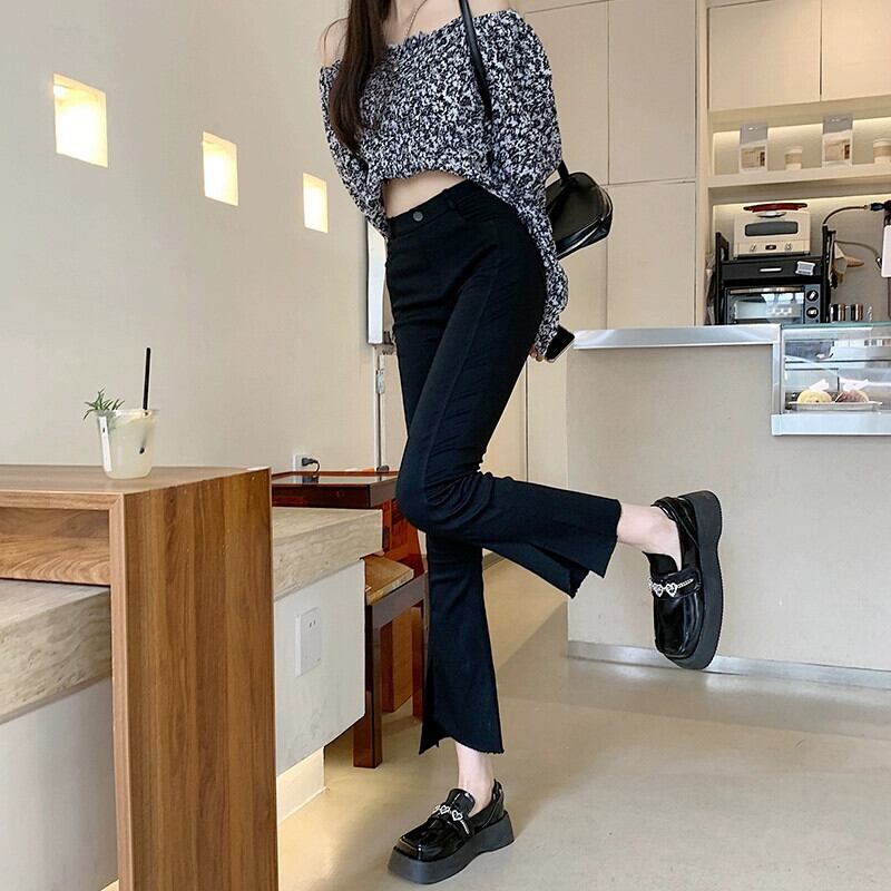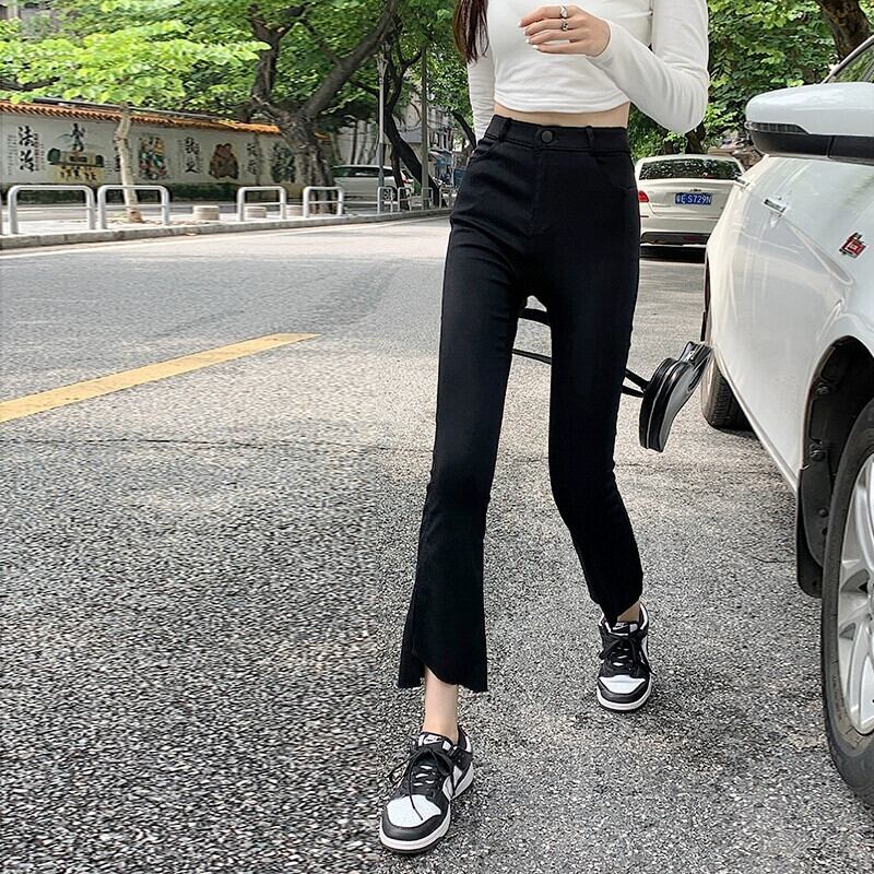 黒のマイクロフレアパンツレディース2023年秋新作人気ハイウエストスリムストレートレッグスリム9点カジュアルパンツ ブラック オータム 秋物 8571658077202734