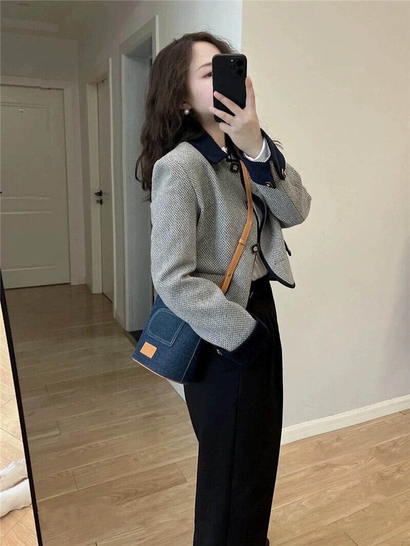 2023年秋の新しいフレンチデザインのニッチハイエンドプチトップの短い小さな香りのよいジャケットの女性 ショート オータム 秋物 857164039173327