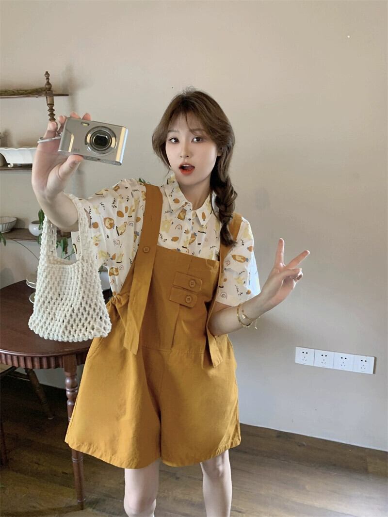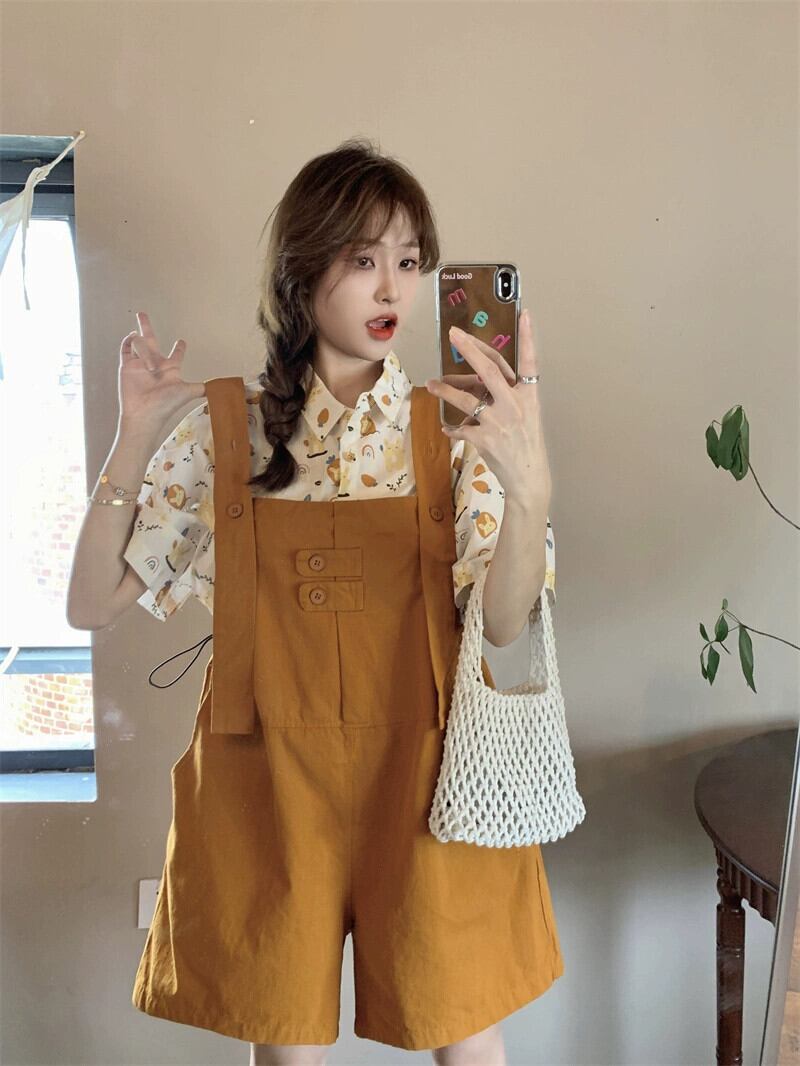 ドーパミン色のオーバーオールの夏の貧乳女性、ふふゆる、ネットセレブ風、老け見えワイドパンツ レッド サマー 夏物 ショーツ ブルマー 8571652383636264