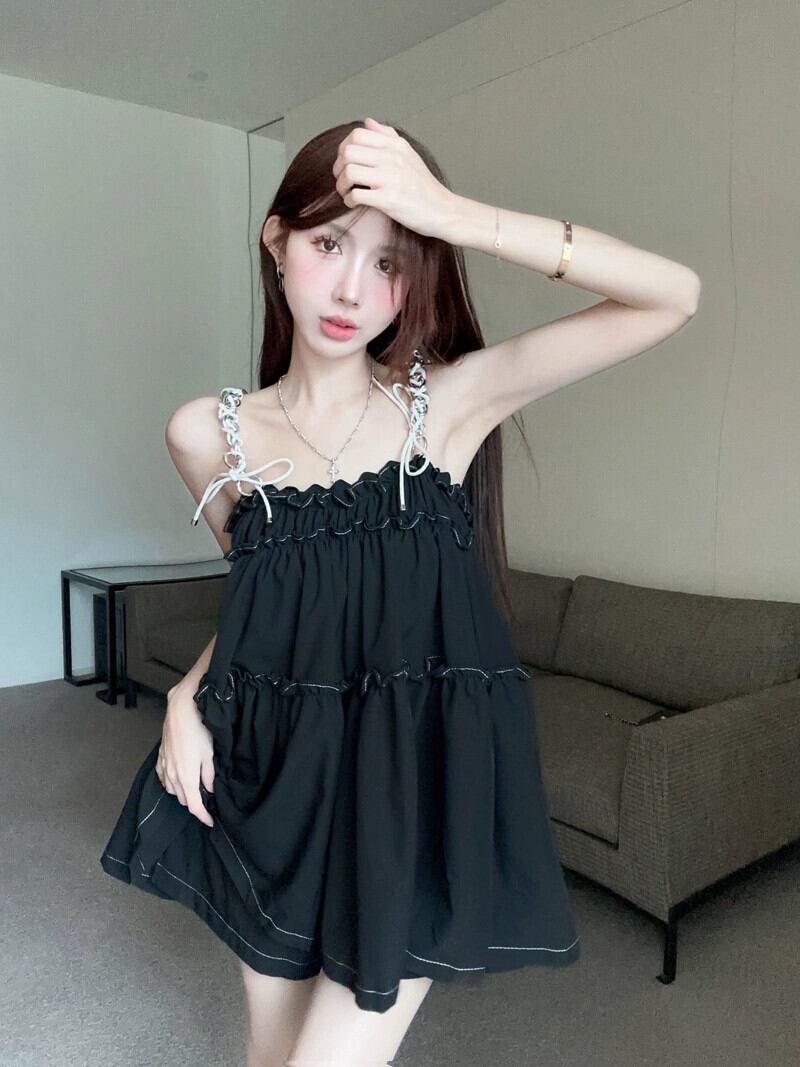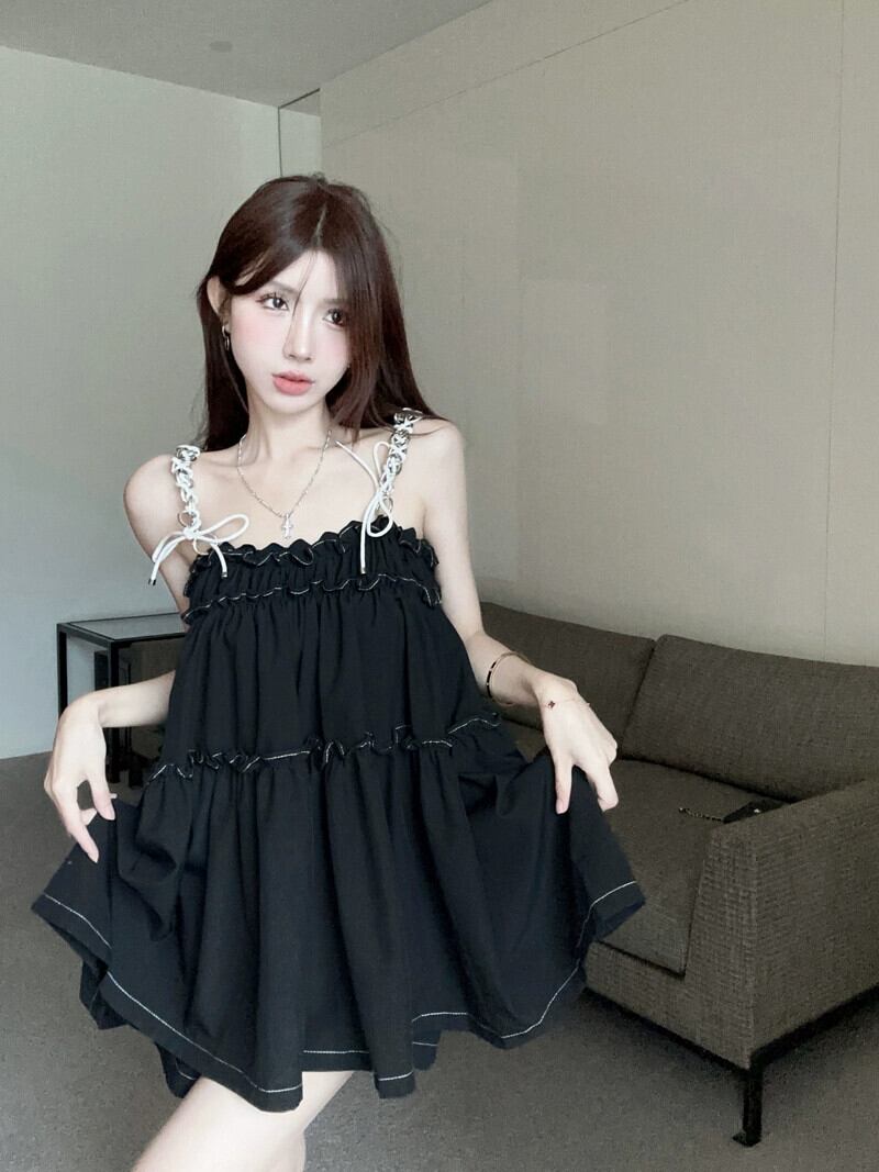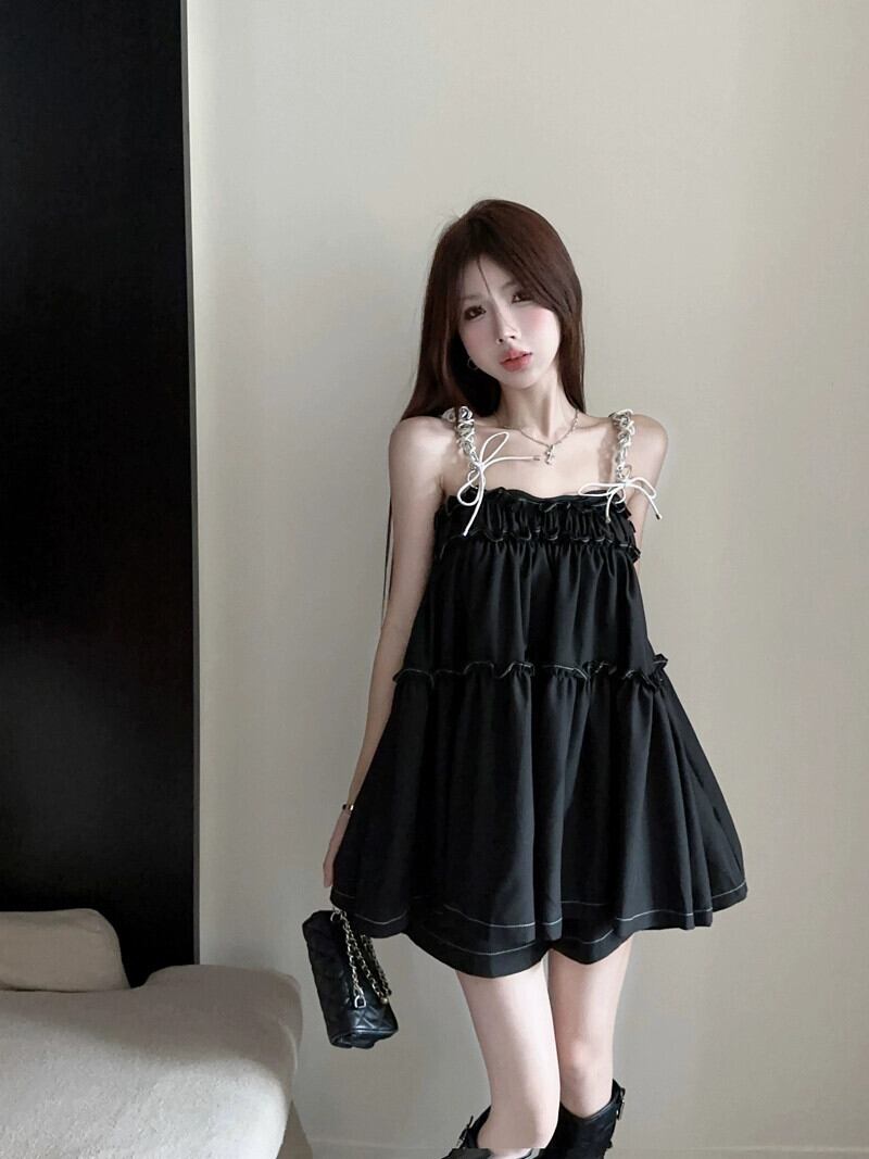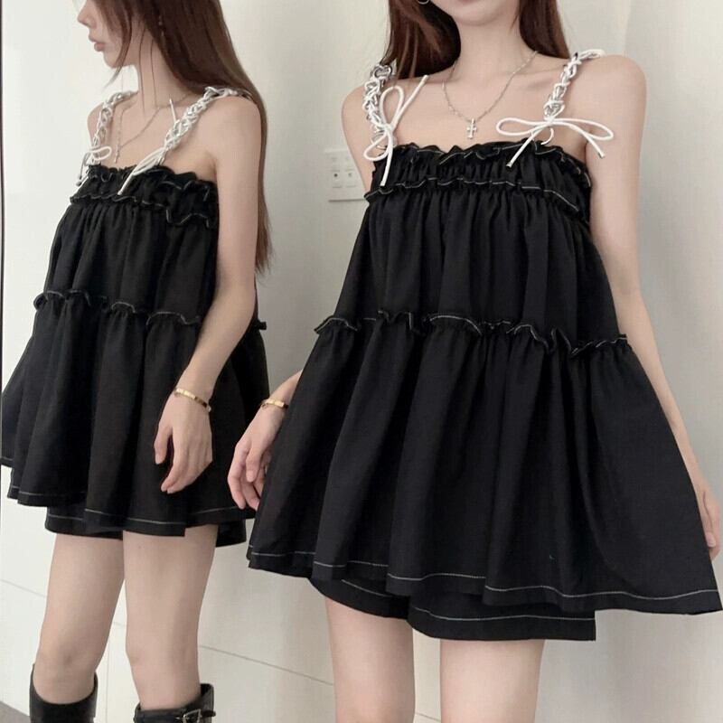 ボウキャミソールレディースアウターウェア 2023 夏の新作純粋で甘いルーズノースリーブベビードールトップ 大人ガーリー スウィート キュート カジュアル サマー 夏物 ピュア 8571693008047354