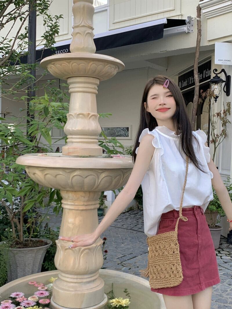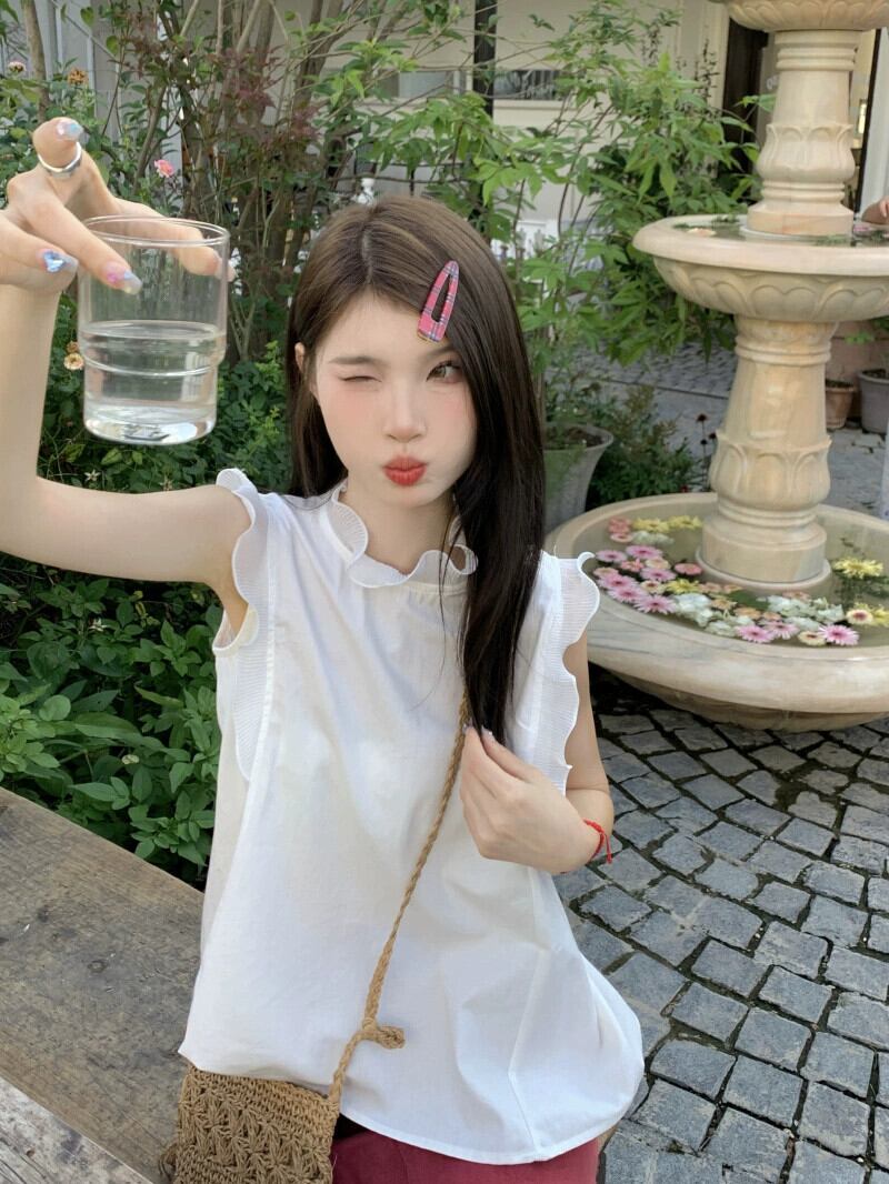 夏の白いノースリーブシャツの女性、ユニークなデザイン、ニッチで優しいスタイル、美しくてスーパーフェアリーイヤートップ ホワイト サマー 夏物 8571611702134057