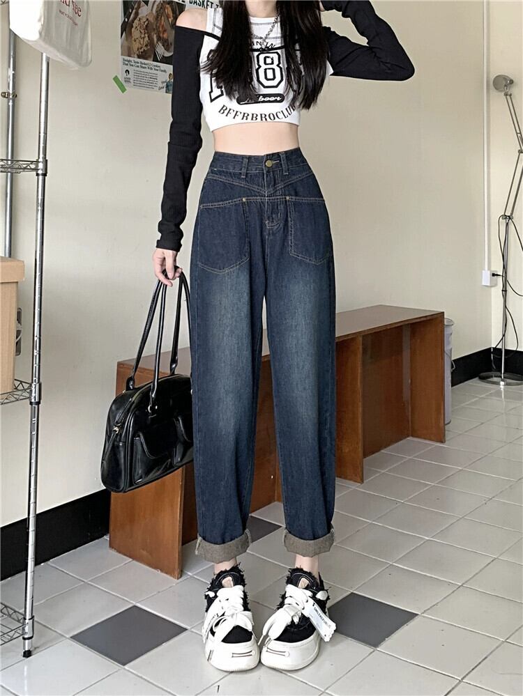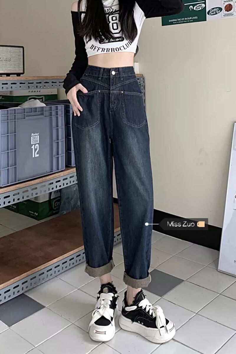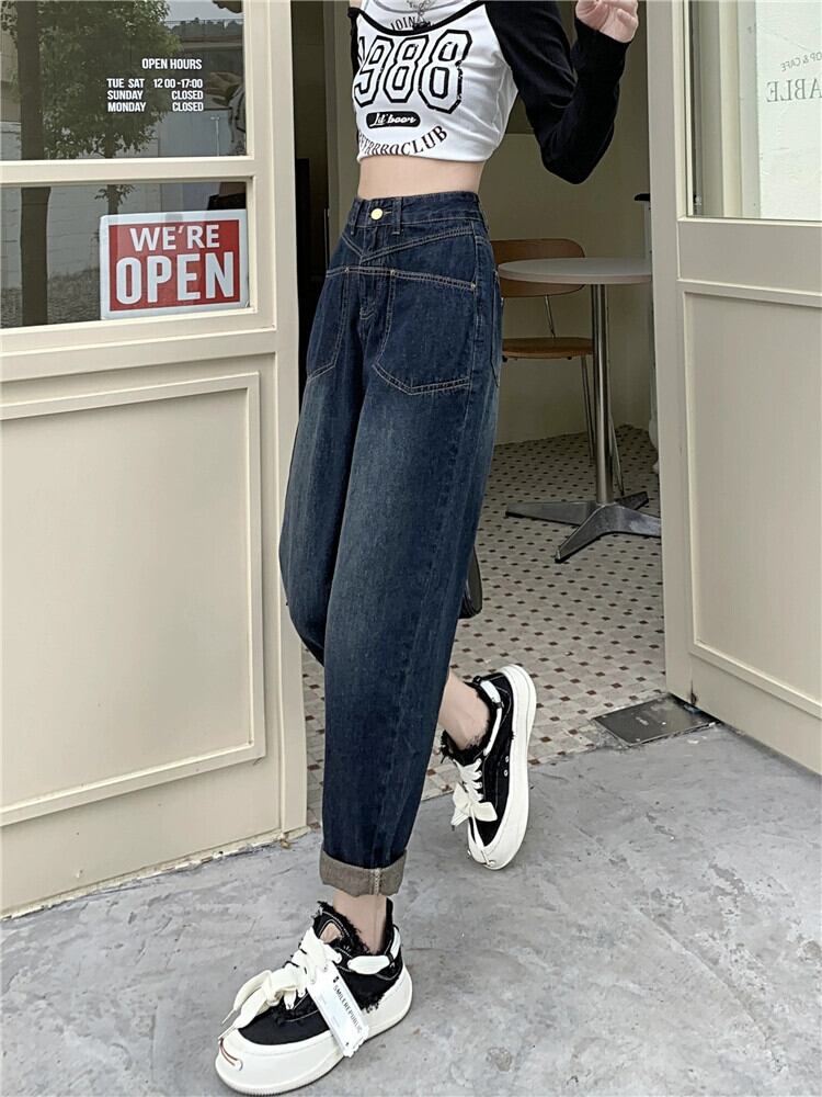 アメリカンレトロお父さんジーンズ女性 2023 秋の新しいスタイルのデザインニッチ小柄なパンツズボン オータム 秋物 8571612543398958