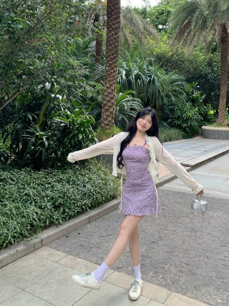 紫の花サスペンダードレスの女性の夏 2023 新しい甘くてスパイシーな小さなスリムフィットヒップハグショートスカート 大人ガーリー スウィート キュート カジュアル サマー 夏物 花柄 パープル 8571651412107238