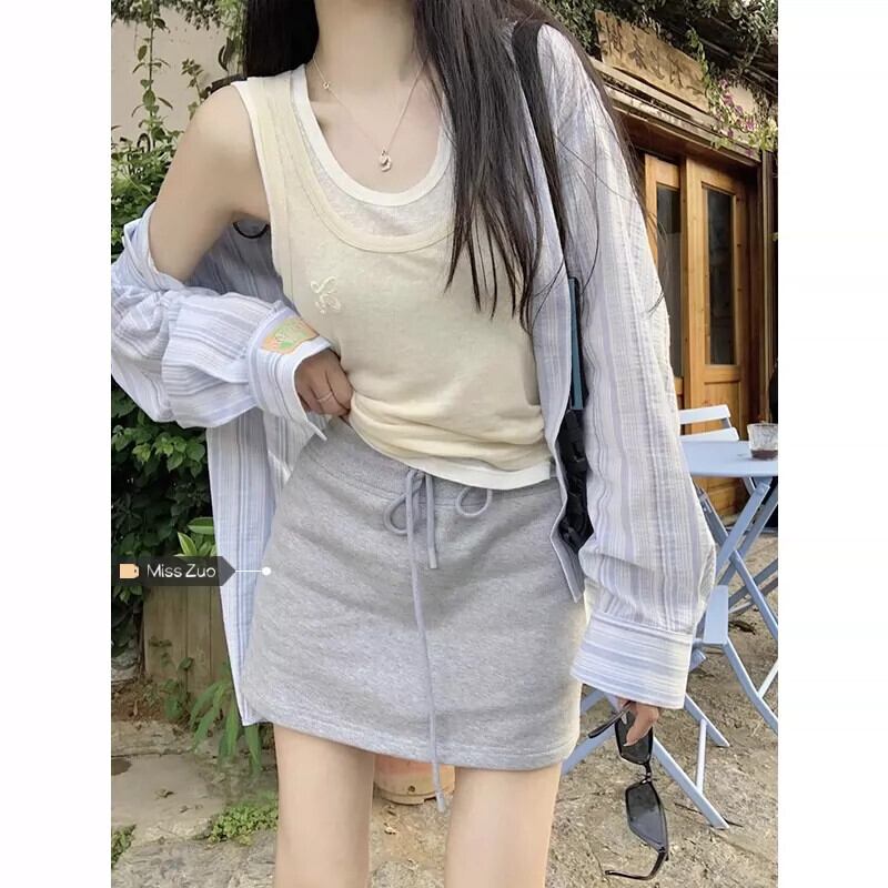 偽ツーピーススポーツベスト女性のインナーベース2023夏新しいアウターウェア多用途ノースリーブTシャツトップ サマー 夏物 8571653341638520