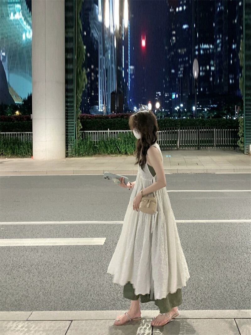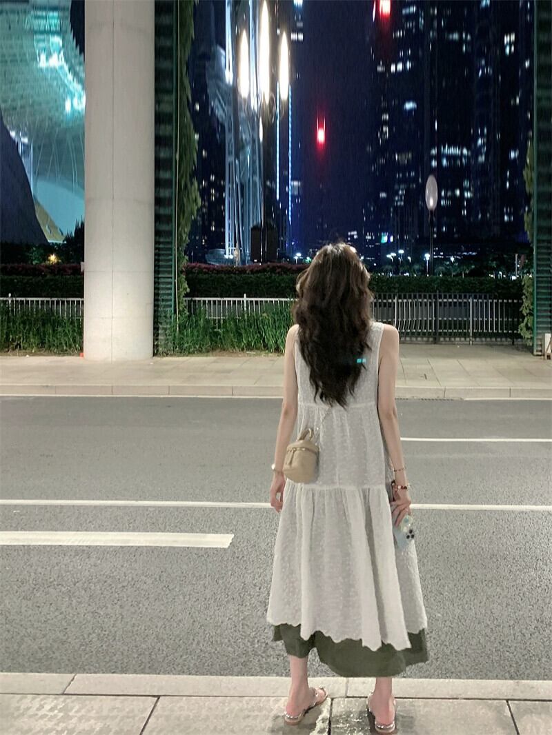 重工業刺繍ベストドレス女性の夏の 2023 新しい緩い怠惰な積み重ねブラウス V ネックロングスカート レッド サマー 夏物 Vネック 8571640031608633
