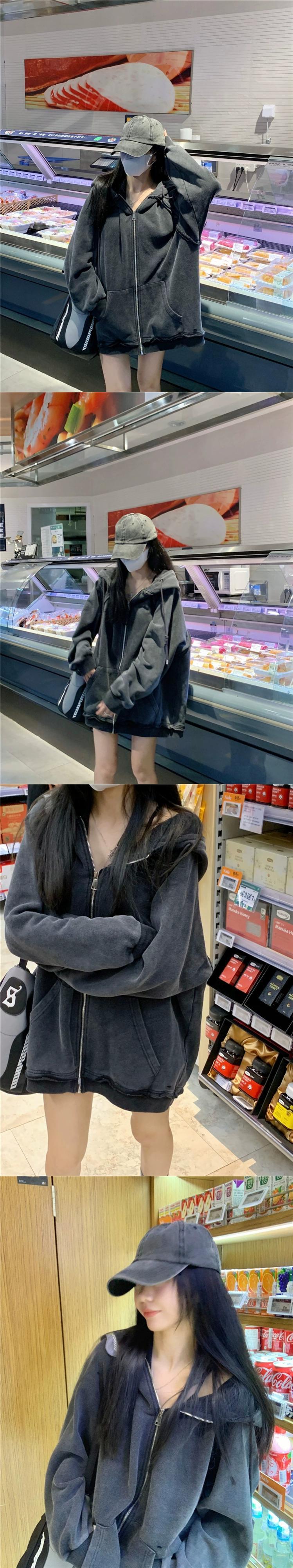 ジッパー スウェットシャツ ジャケット レディース 2023 春の新作 オーバーサイズ ルーズ レイジー スタイル ミッドレングス フード付きトップ スプリング 春物 8571689707525552
