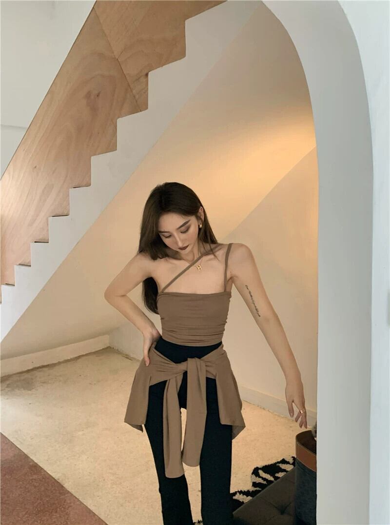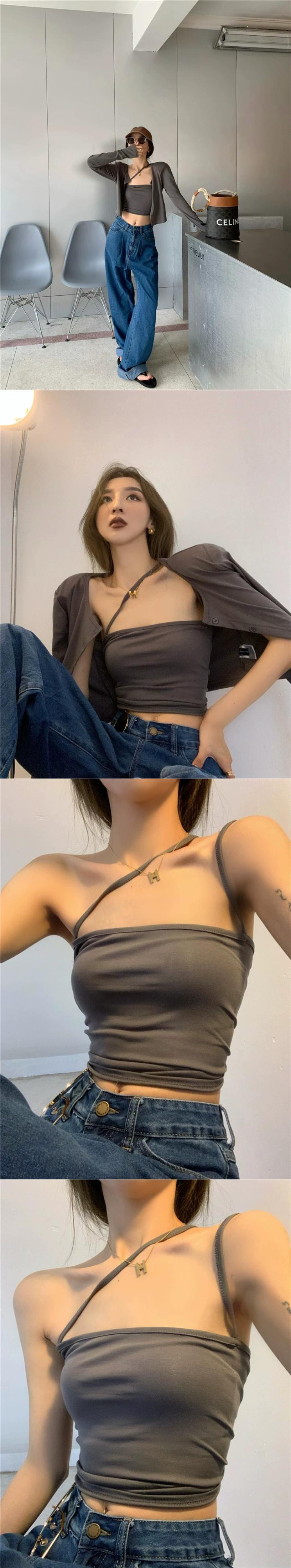 オフショルダー キャミソール レディース インナー 夏 チューブトップ アウター スリムシック ノースリーブ ショート トップ カーディガン 2点セット サマー 夏物 8571688446167464