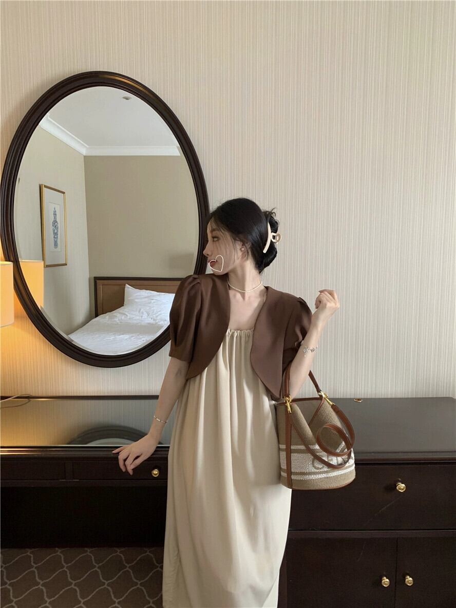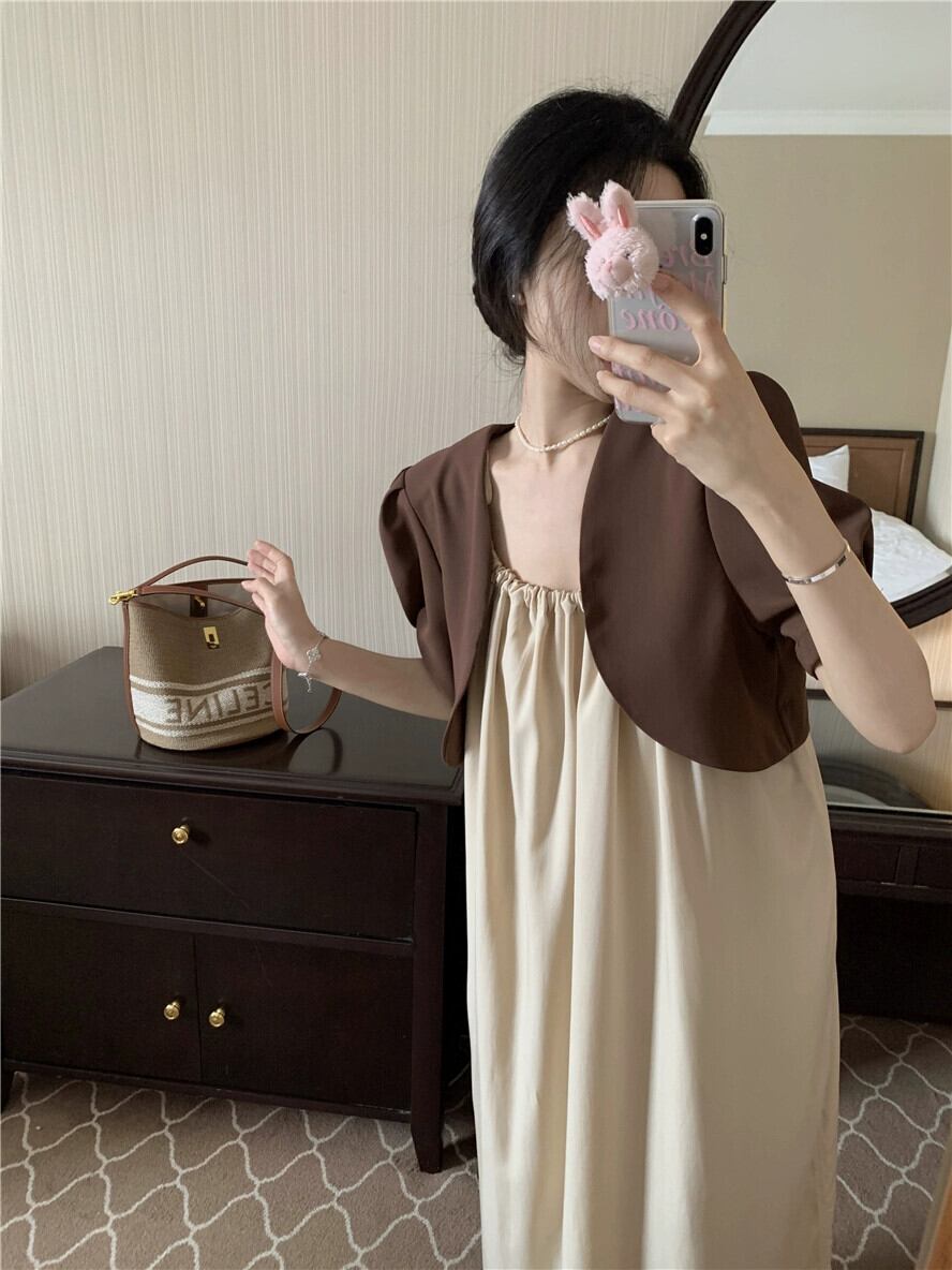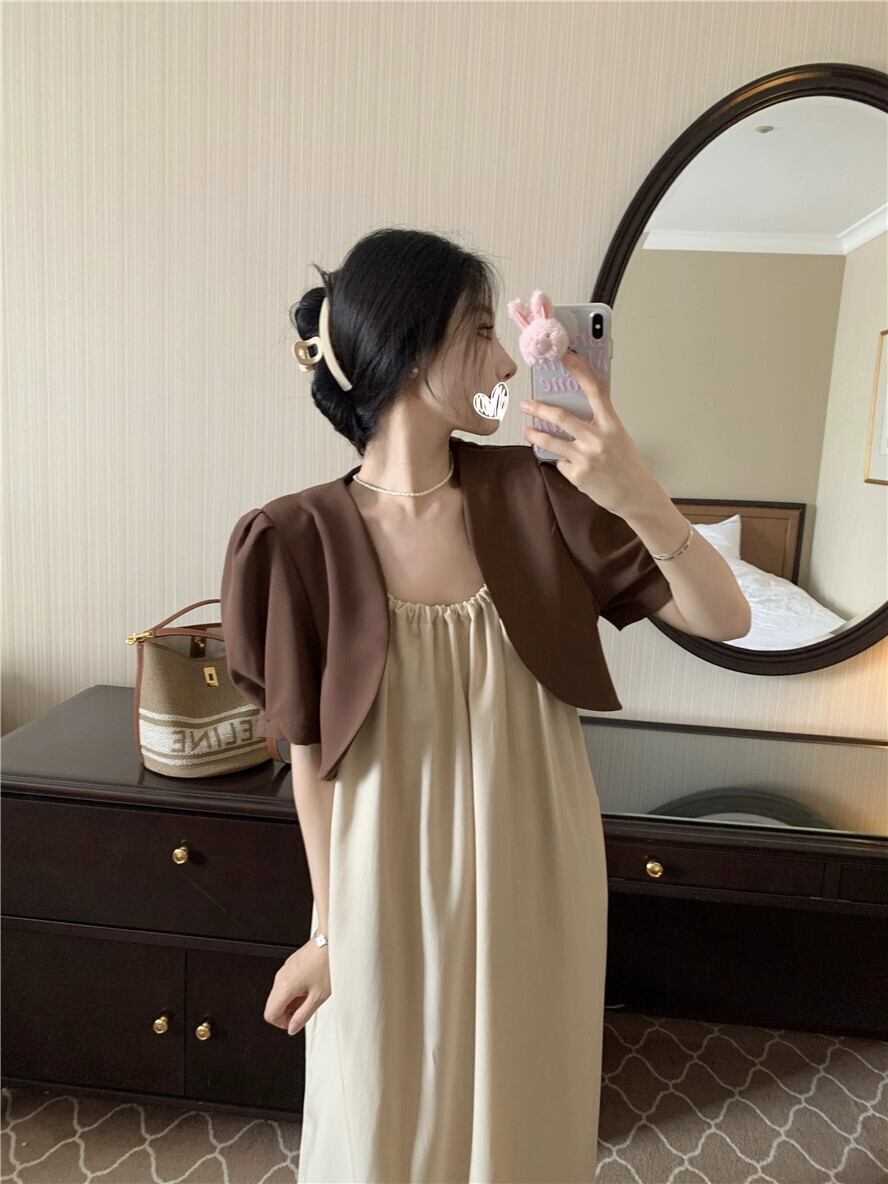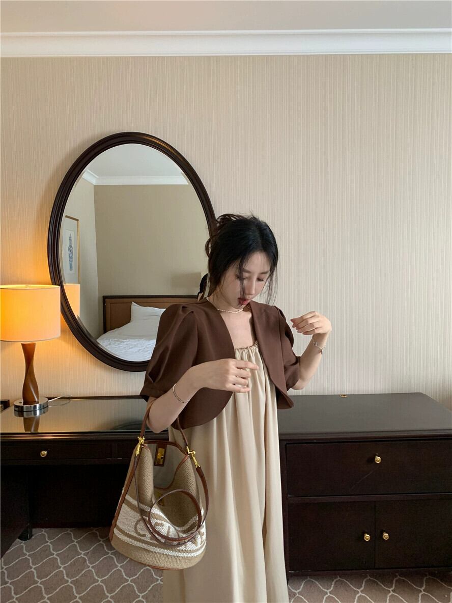 ショルダーパッド入り半袖ブレザーレディースサマードレスショールブラウスハイエンドショートトップ小人 夏物 857162687336435