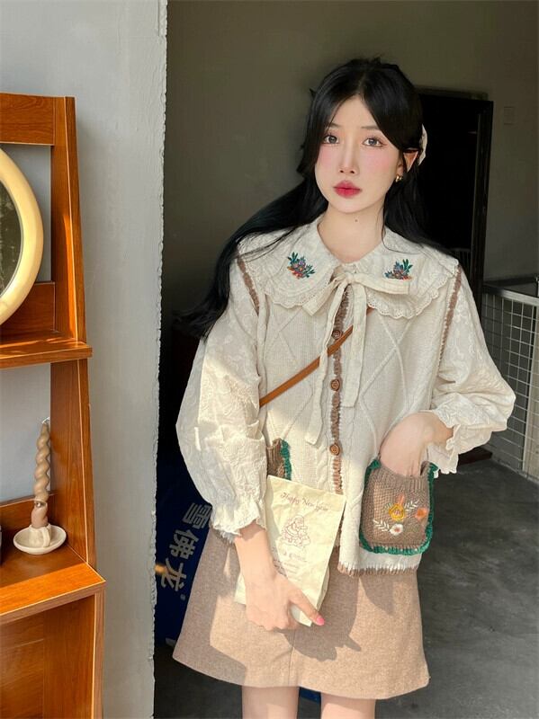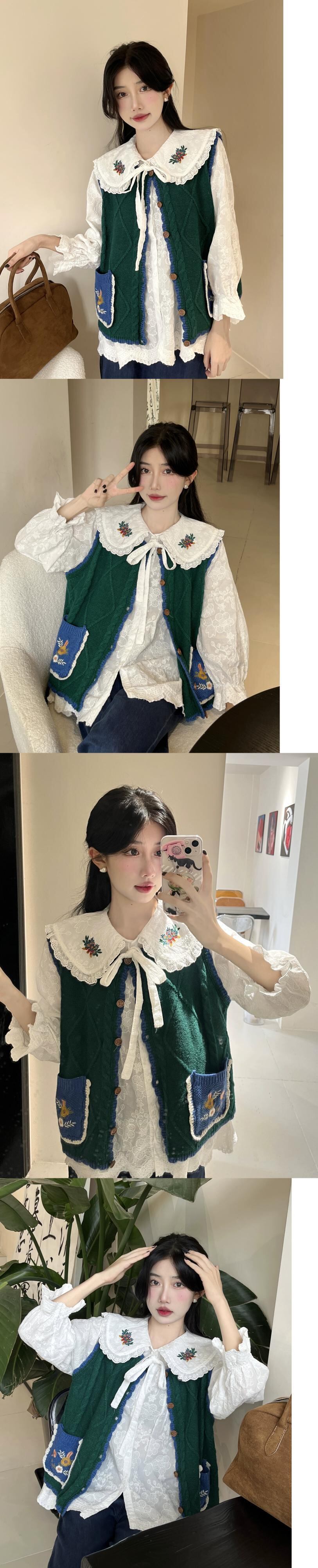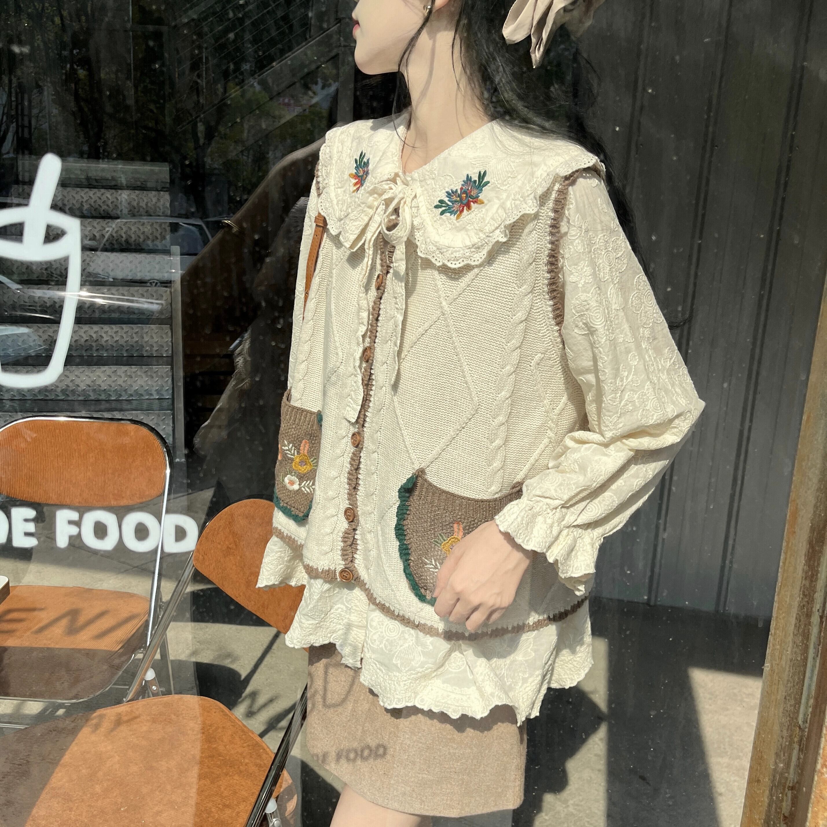 色:アプリコットベスト,グリーンベスト,アプリコットレースシャツ,白いレースのシャツ