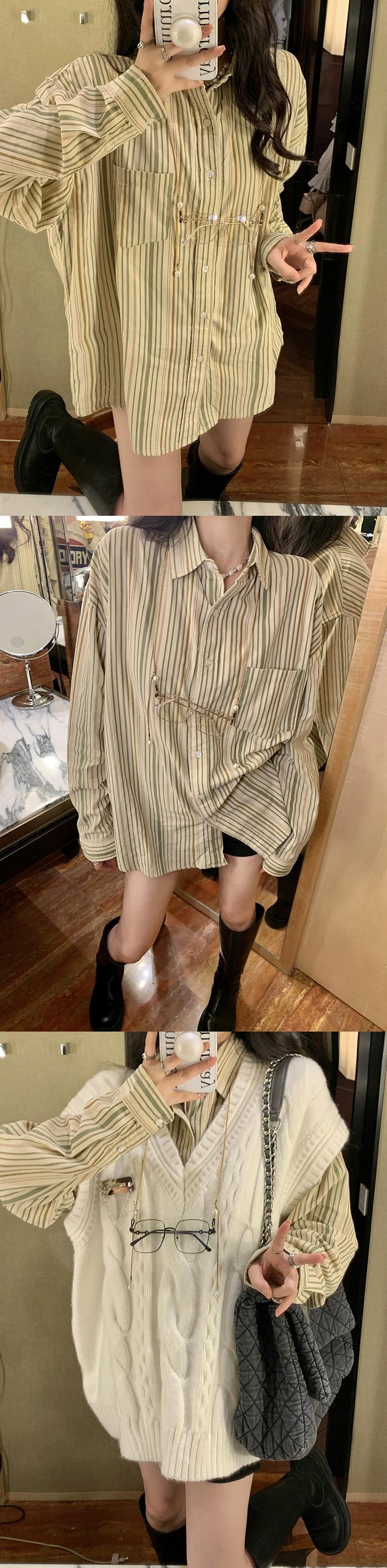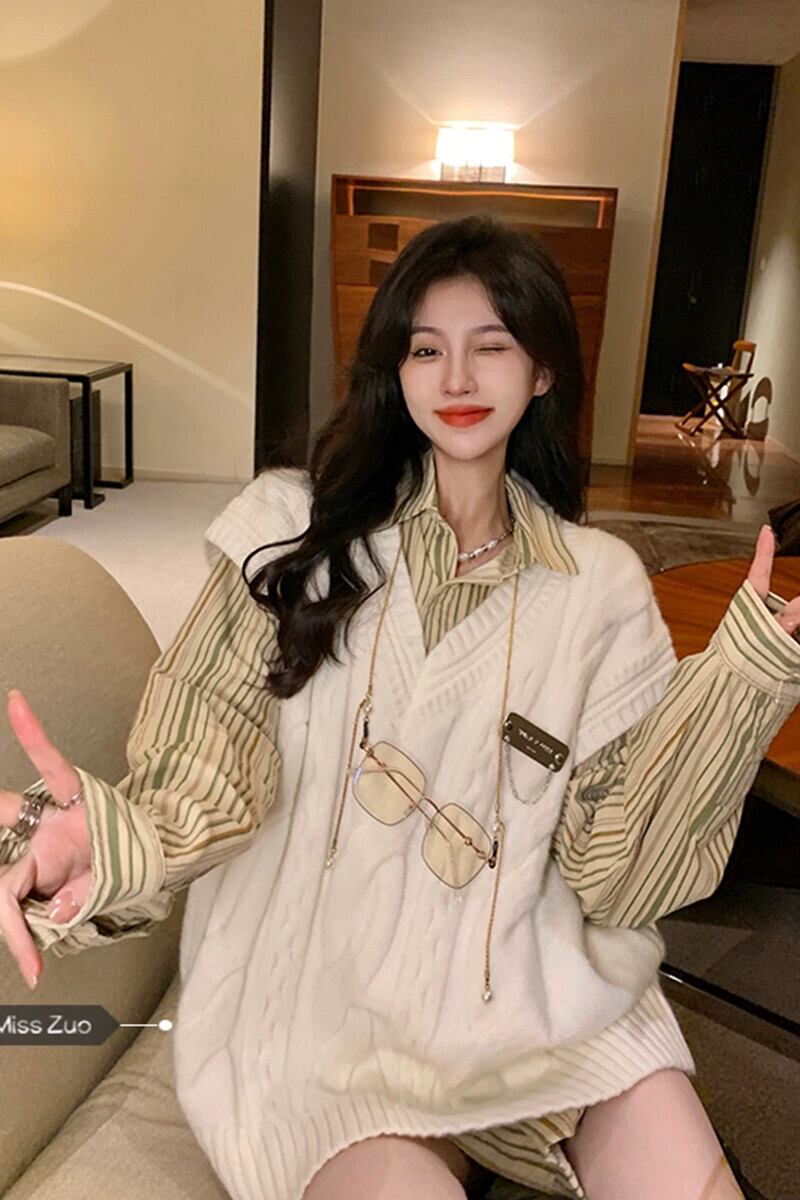 色:アプリコットツイストベスト,ストライプロングスリーブシャツ,ブロガー募集オーダー