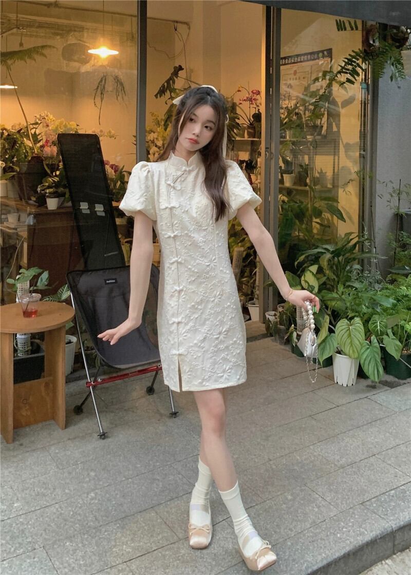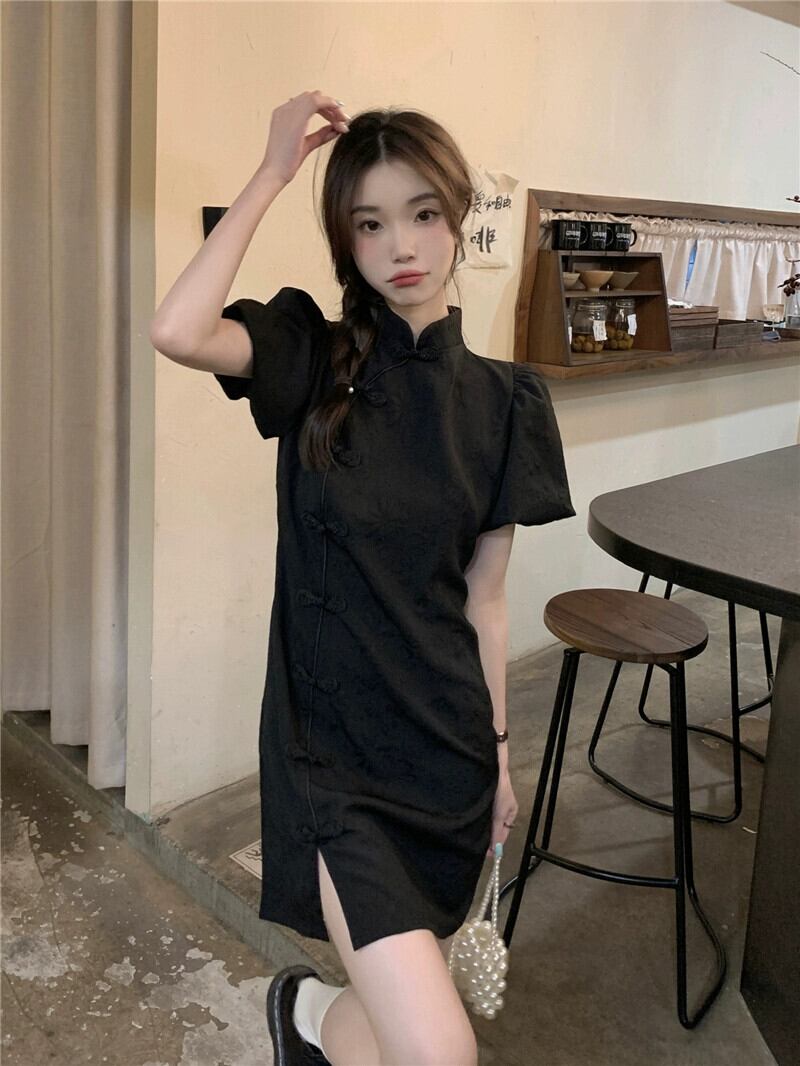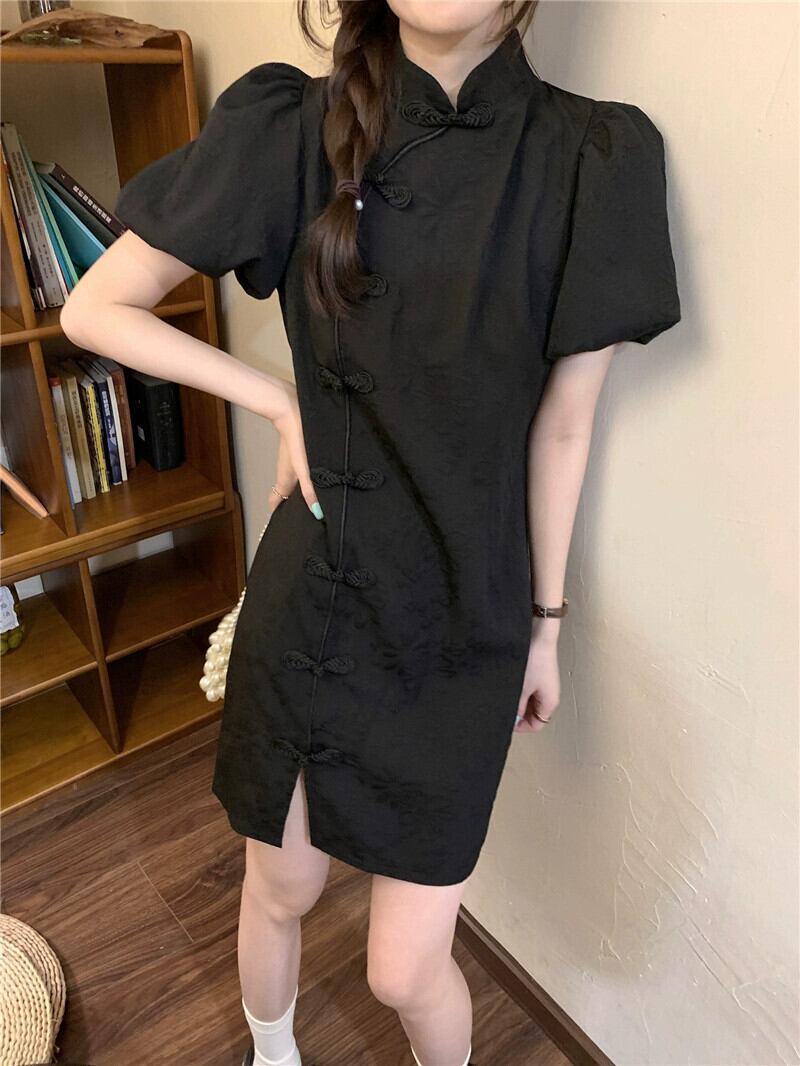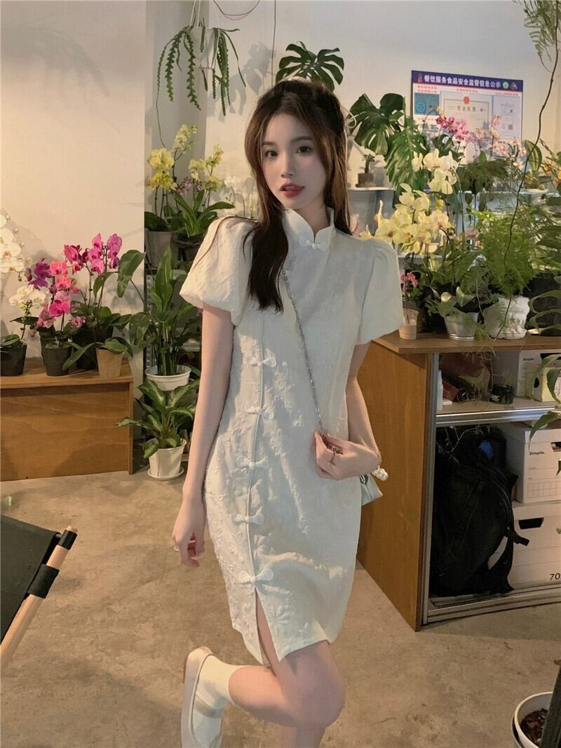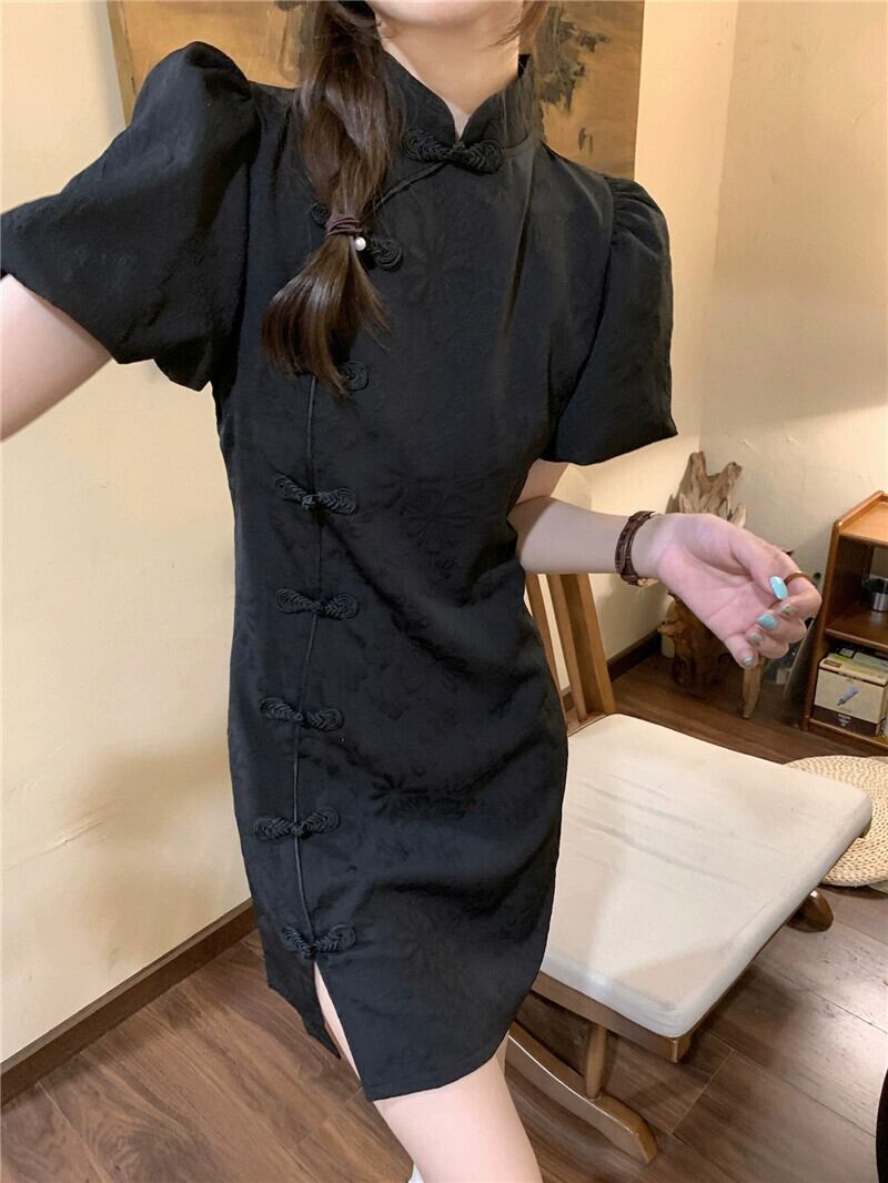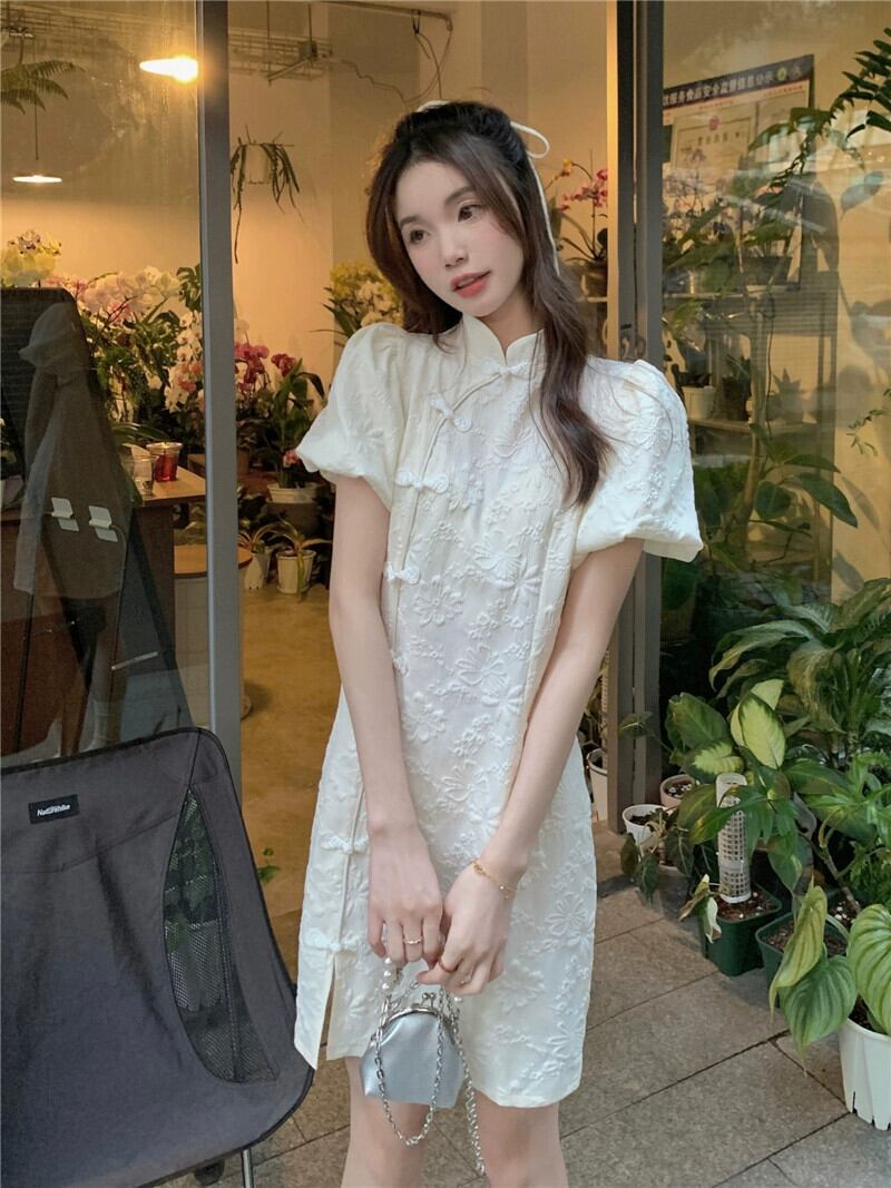 改良されたチャイナドレス若いスタイルのドレスの女性の夏の新しい中国風の優しい気質小さなパフスリーブスカート サマー 夏物 8571626086286076