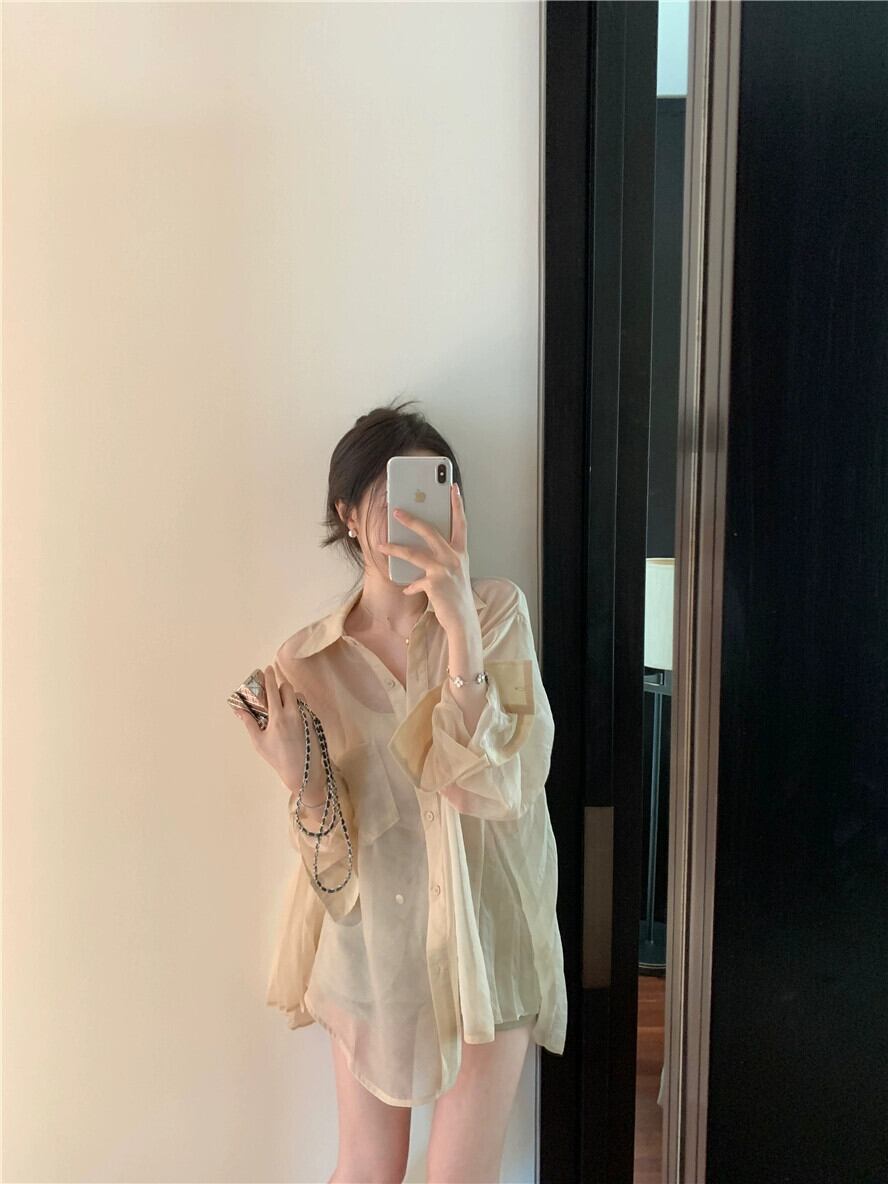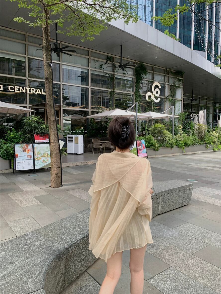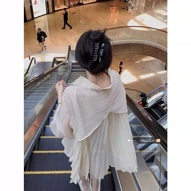 プリーツステッチ日焼け防止シャツジャケット女性夏薄型デザインニッチ気質シックなスーパー妖精長袖トップ ロング サマー 夏物 8571699419477217
