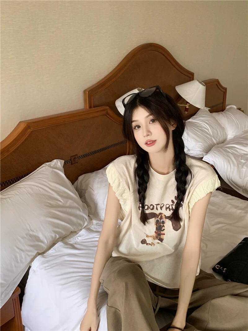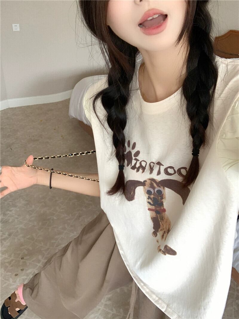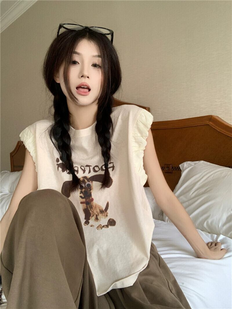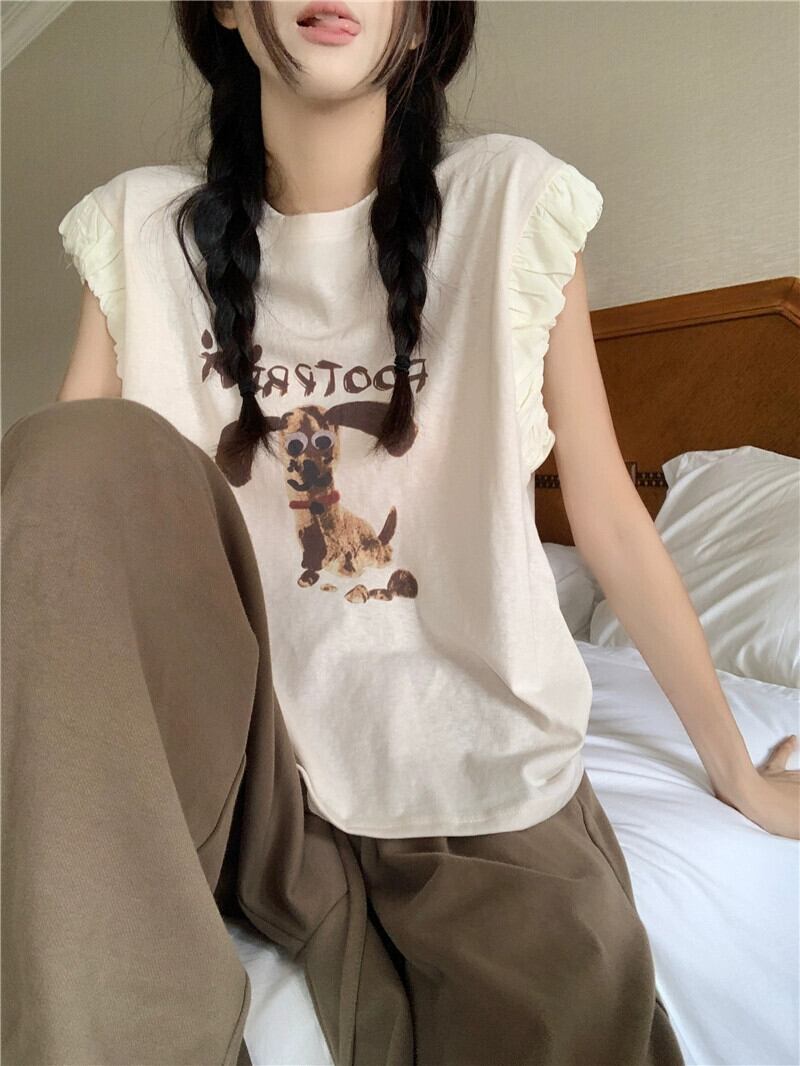 プリントノースリーブTシャツレディース夏デザインニッチ2023新しいスタイルルーズウエスタンスタイル年齢を減らすニッチ万能トップ サマー 夏物 8571696175802159