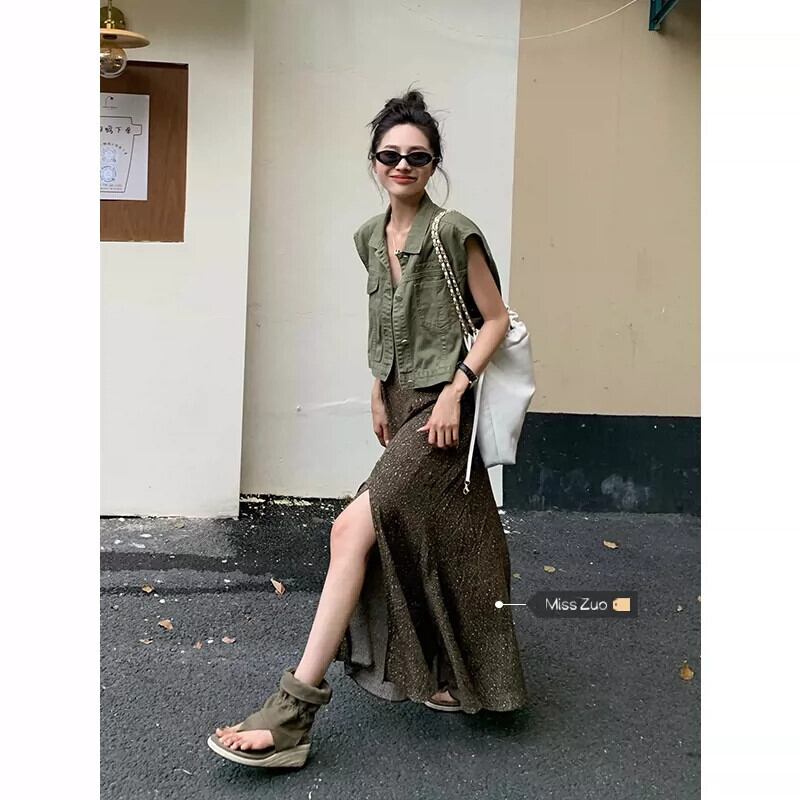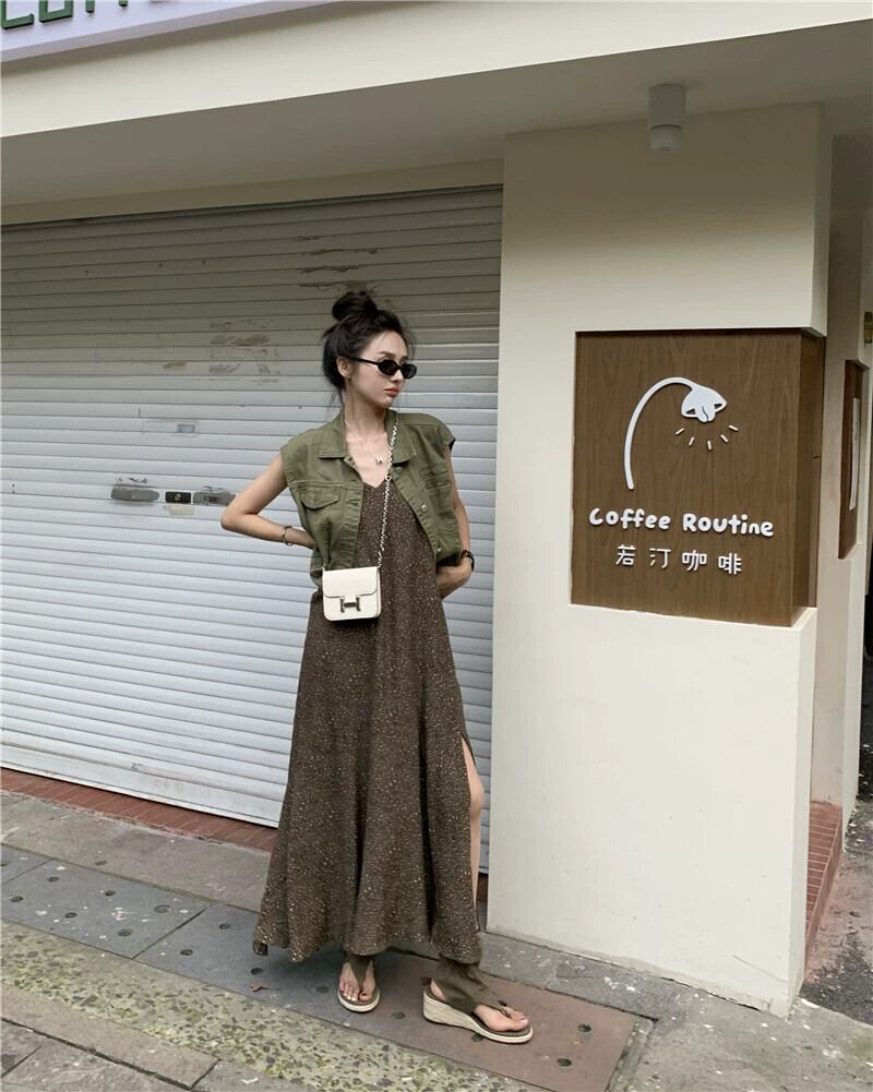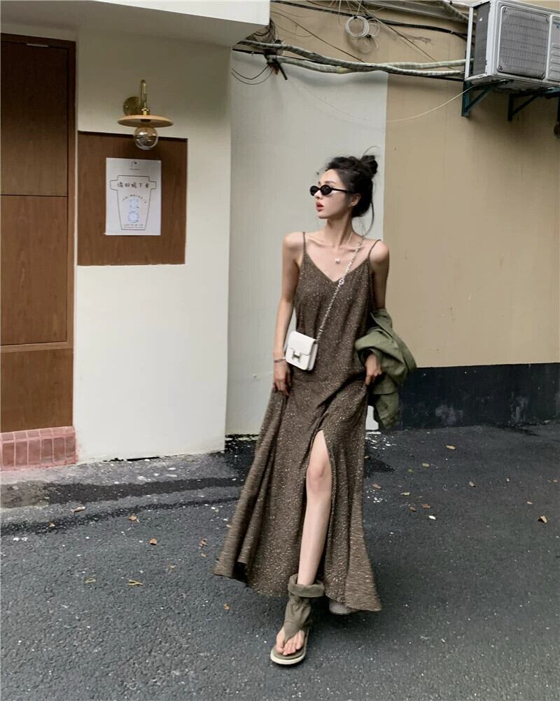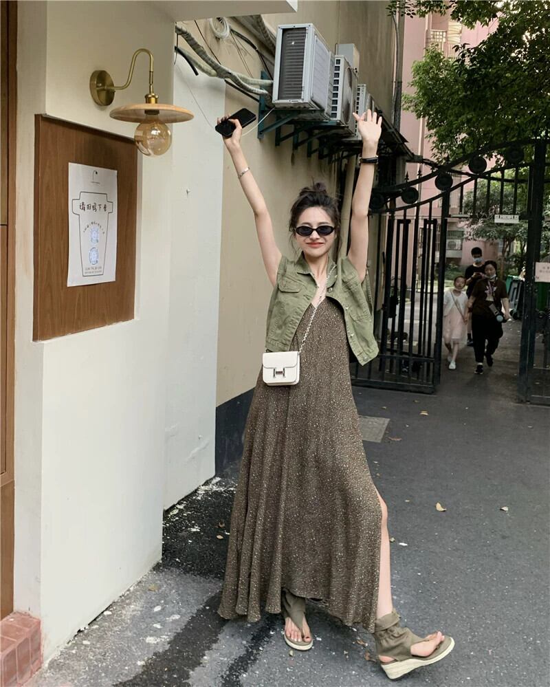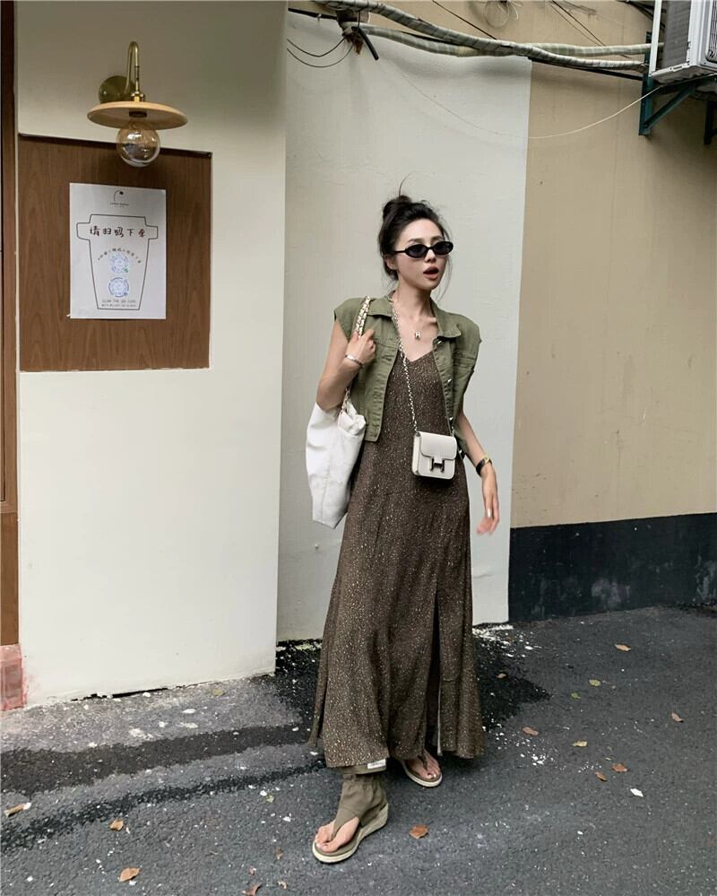 スリットサスペンダードレスの女性の夏 2023 新しいスタイルフレンチレトロな気質シックなハイエンドインナーロングスカート サマー 夏物 8571651694967985