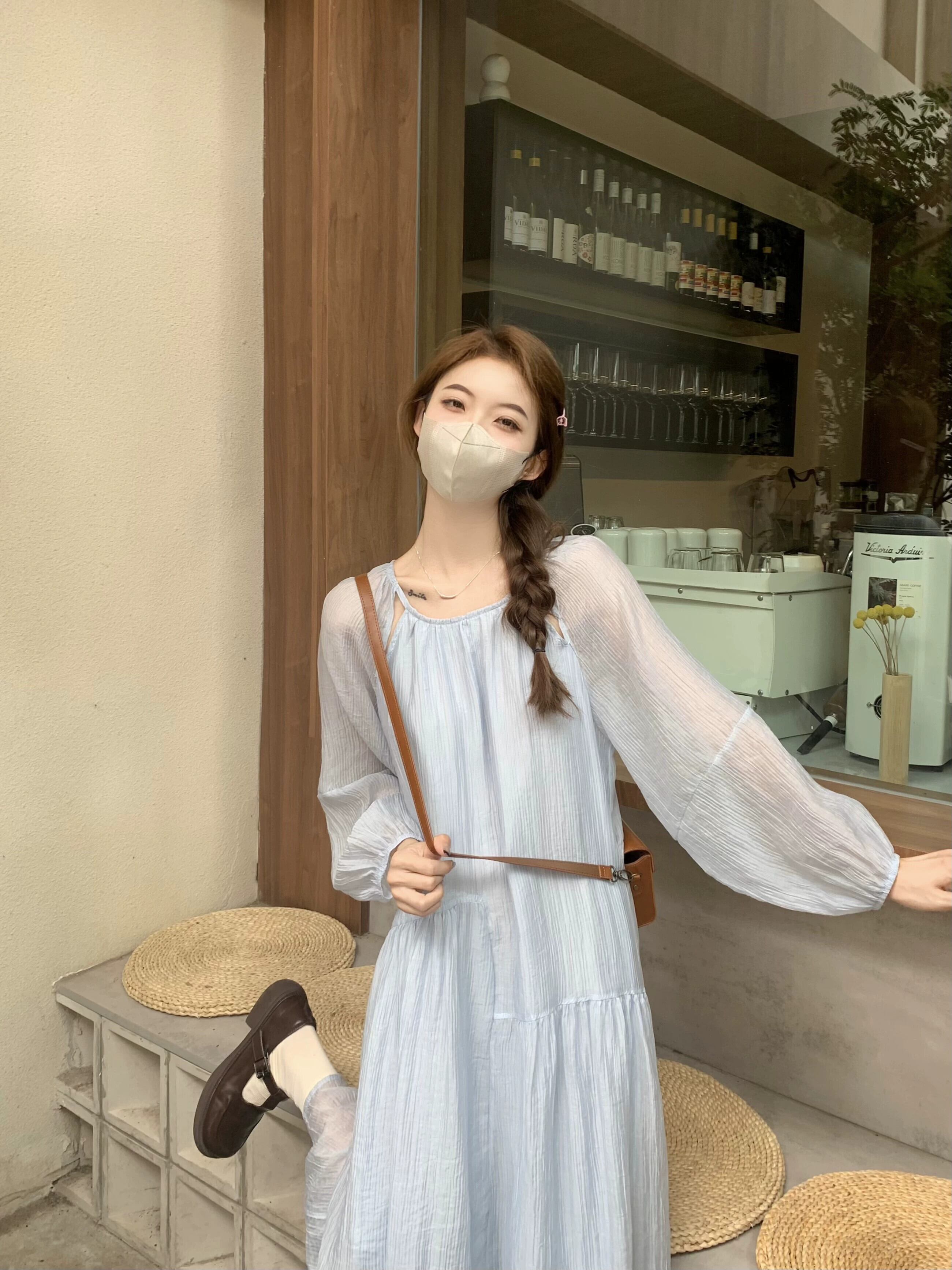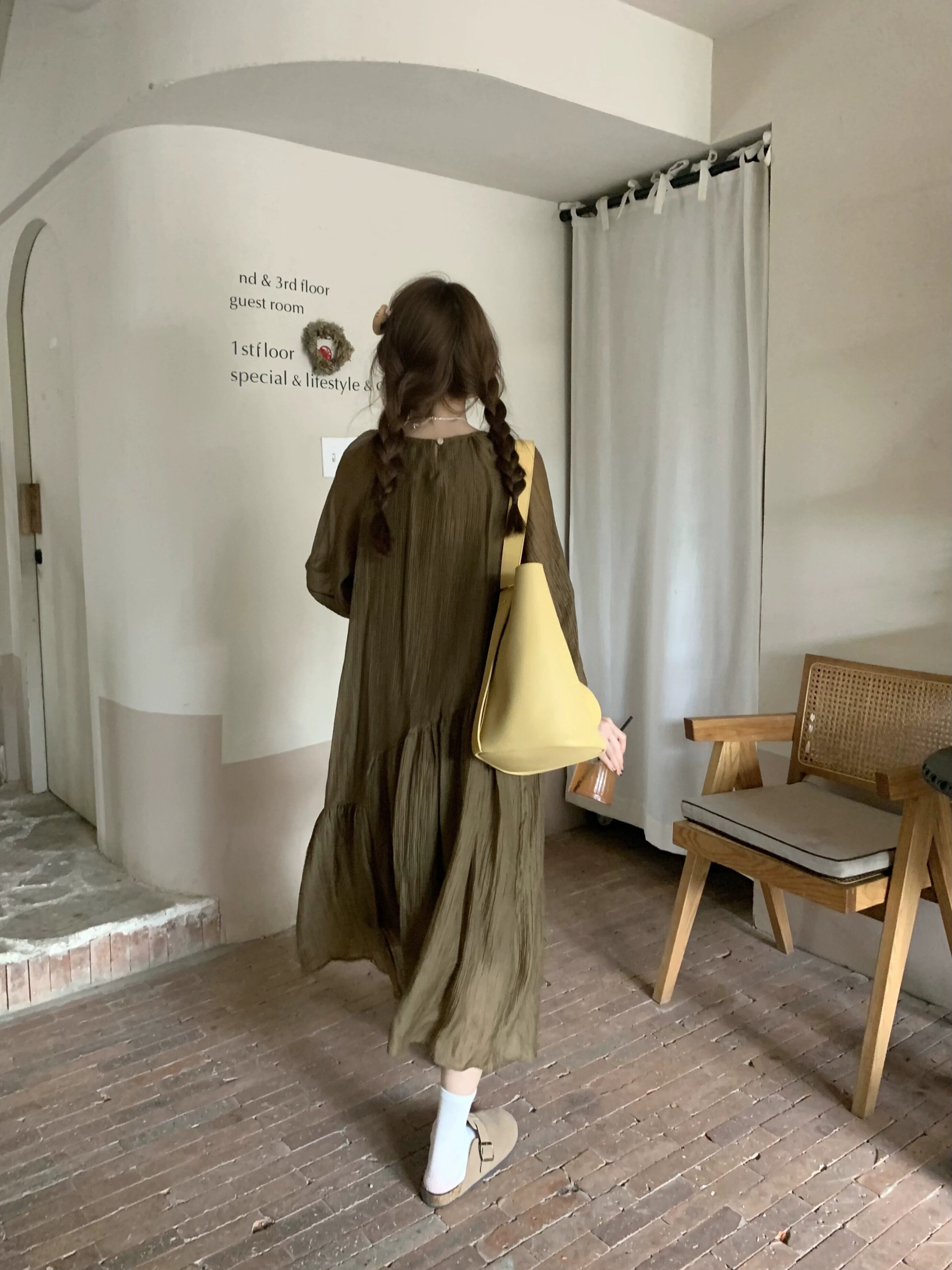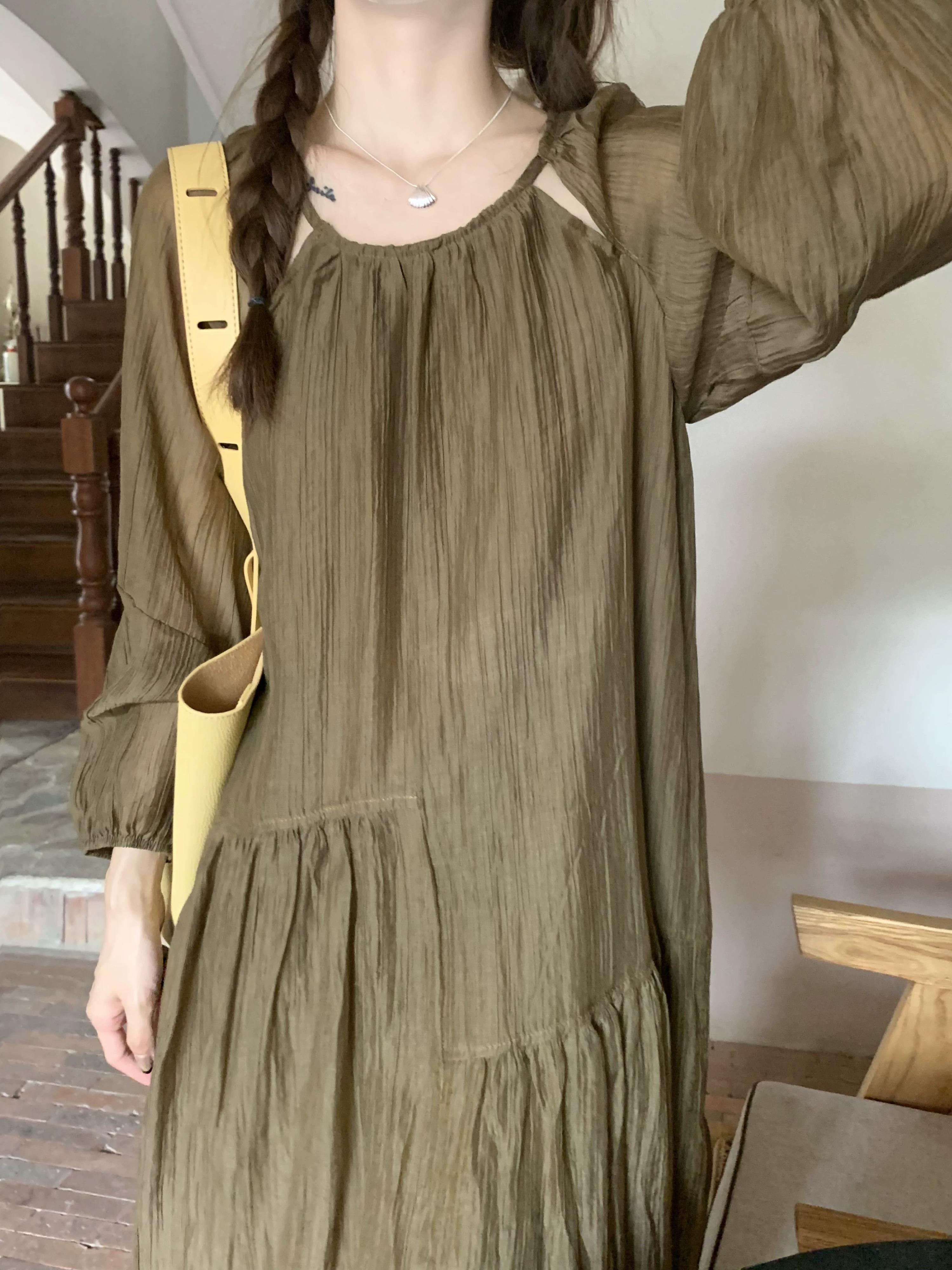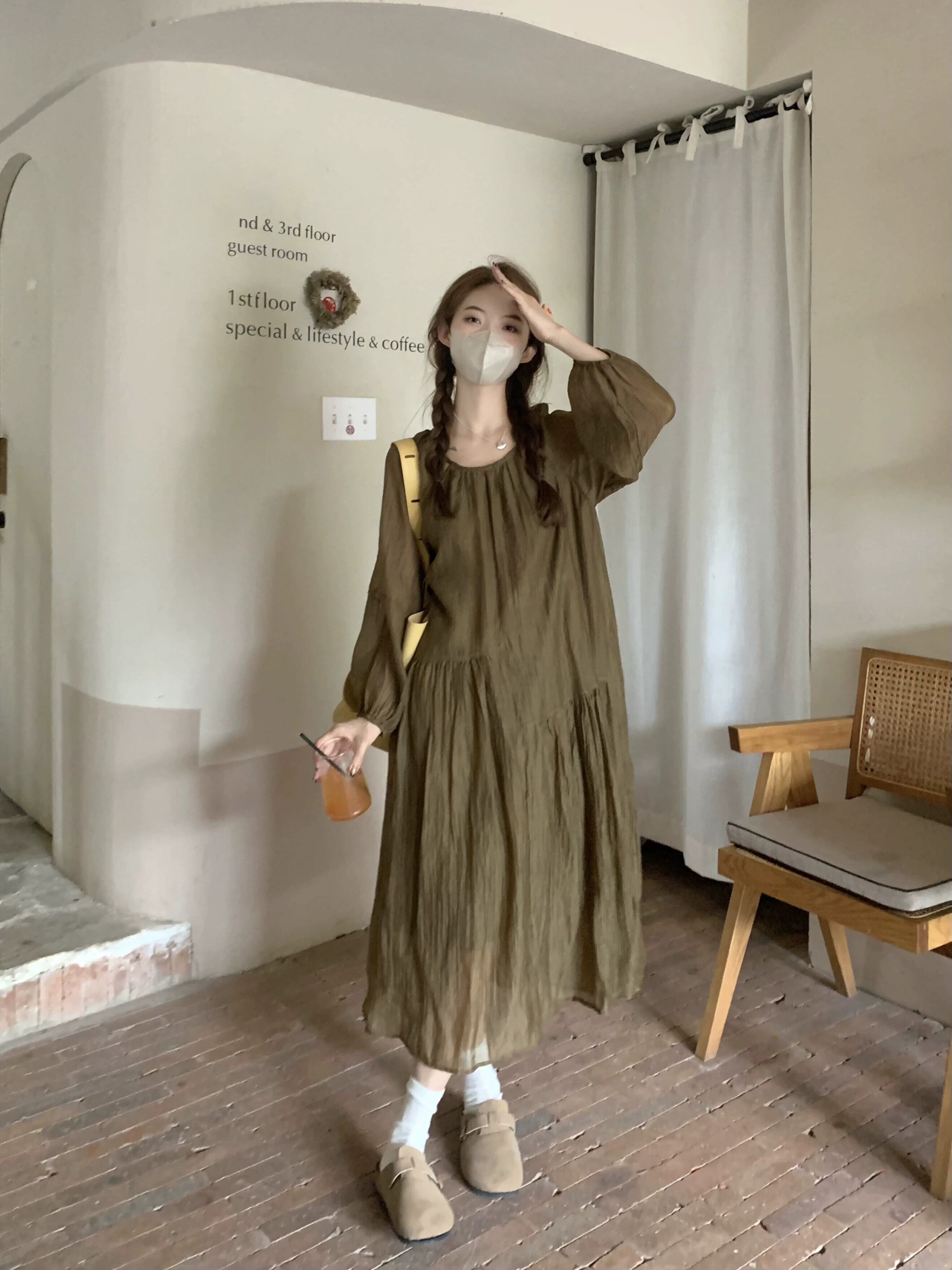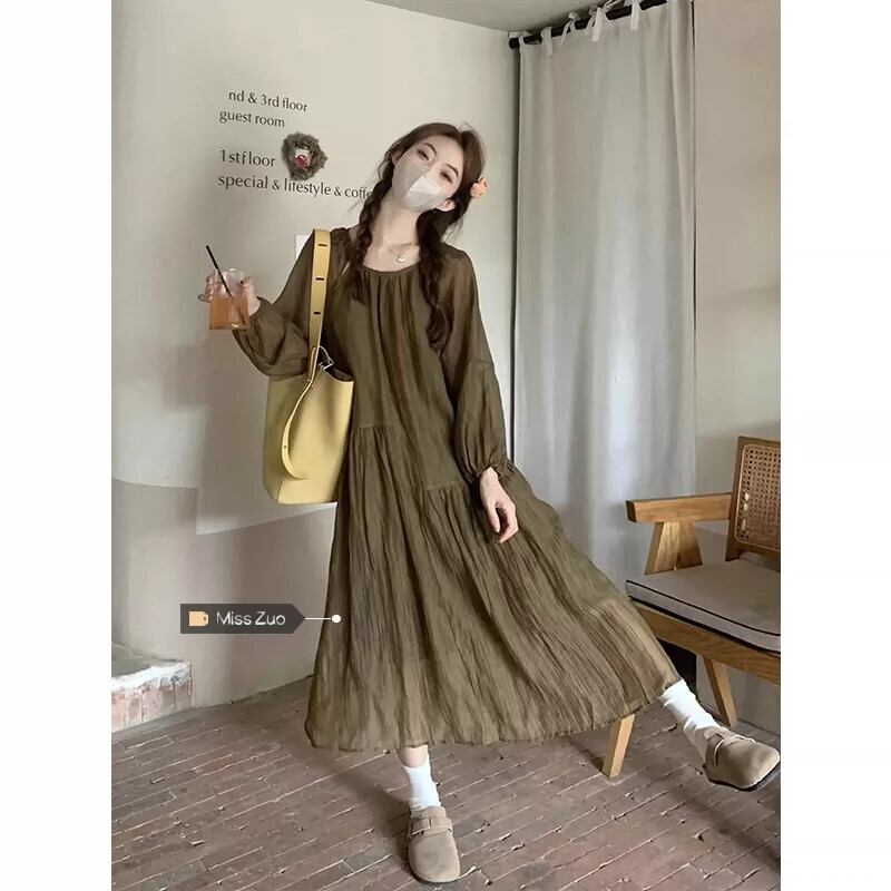 ブラウン長袖ドレスの女性の 2023 秋の新作フレンチスタイルの優しい気質のハイエンドの超美しいロングスカート オータム 秋物 857167313989359