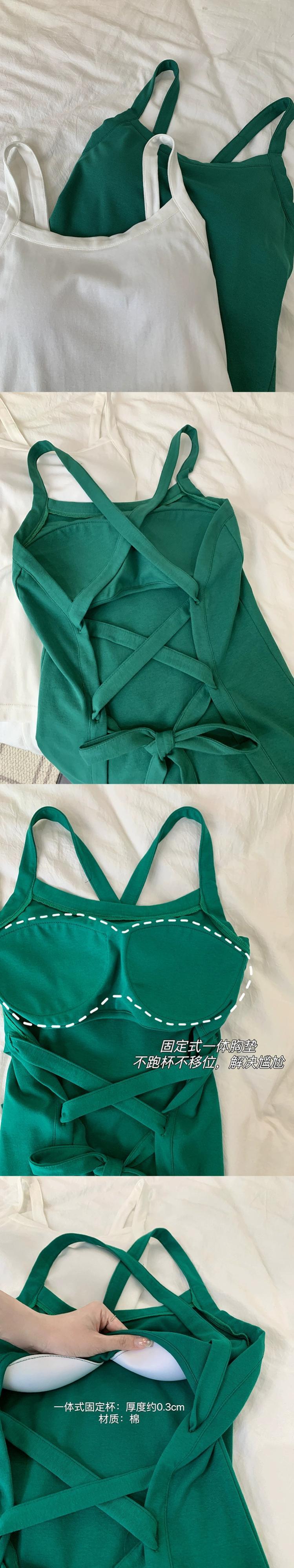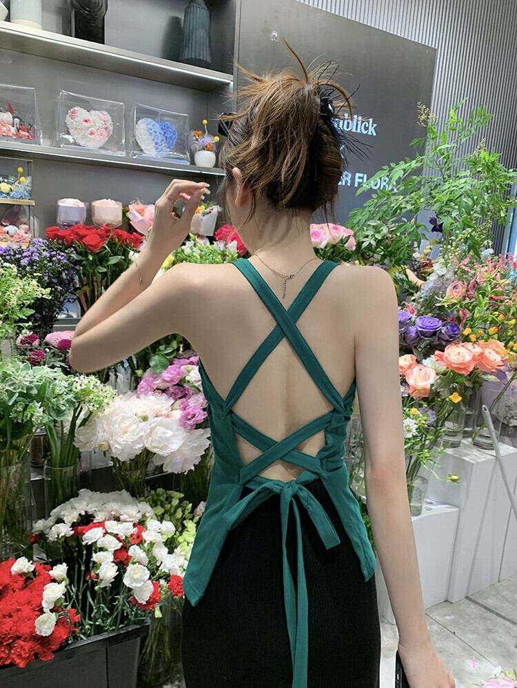 緑の美しいバックキャミソール女性のインナーウェア胸パッド付き夏アウター純粋な欲望スリムショートストラップトップ サマー 夏物 ピュア グリーン 8571675387583837
