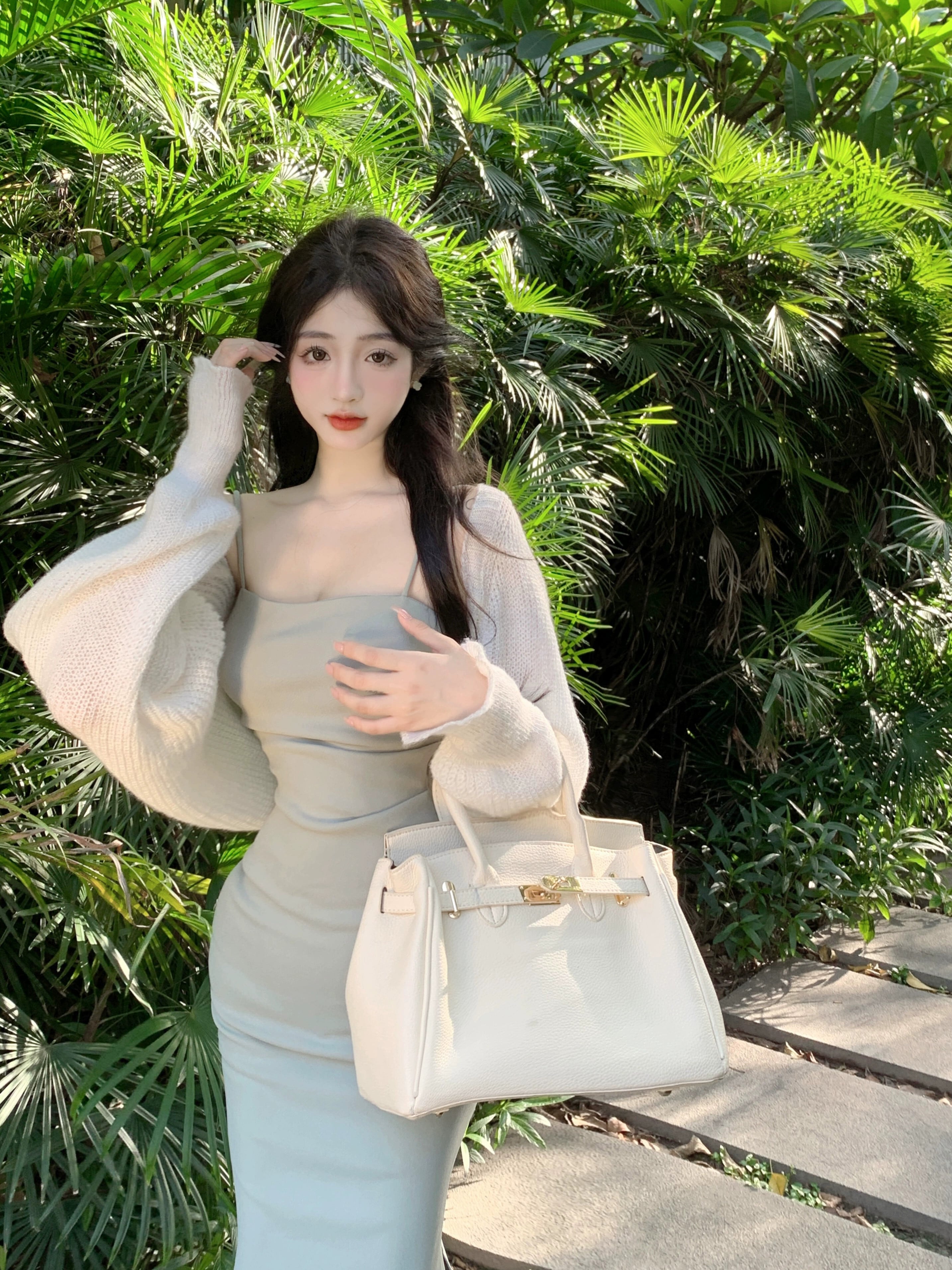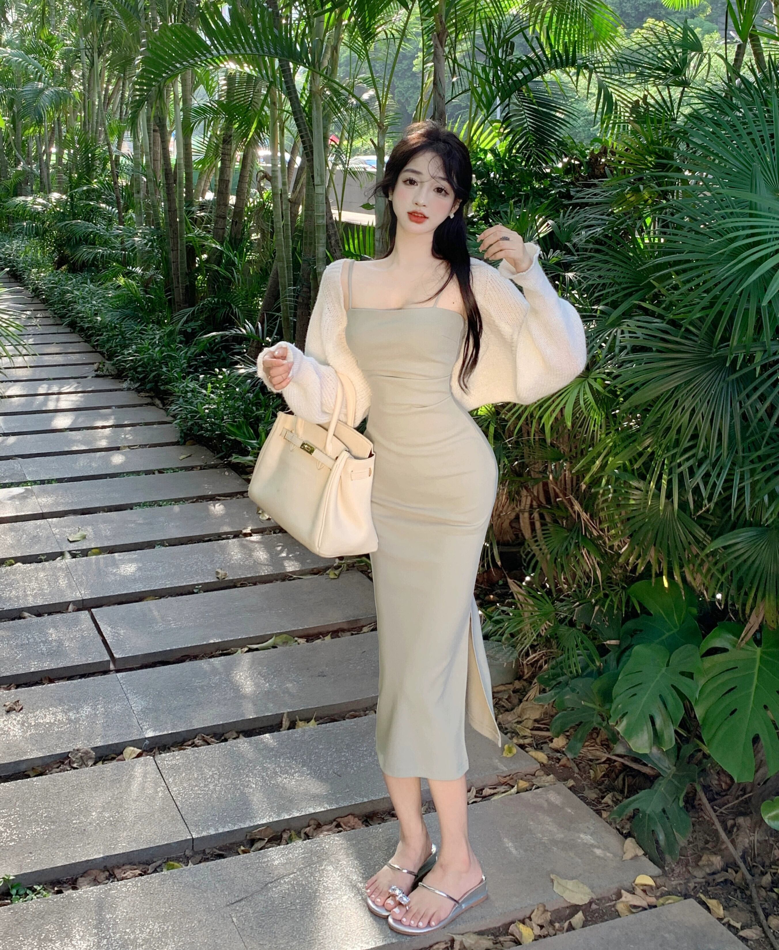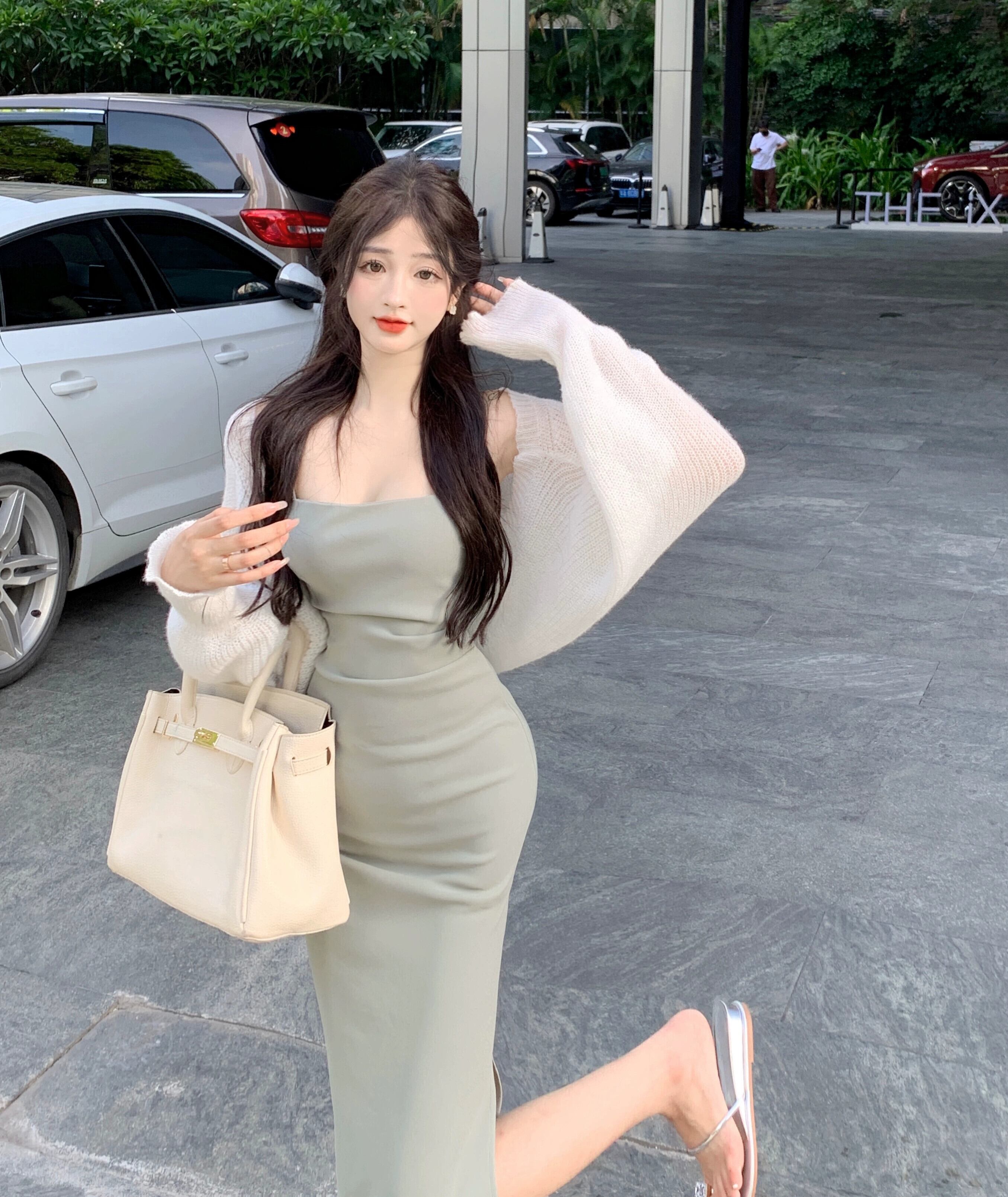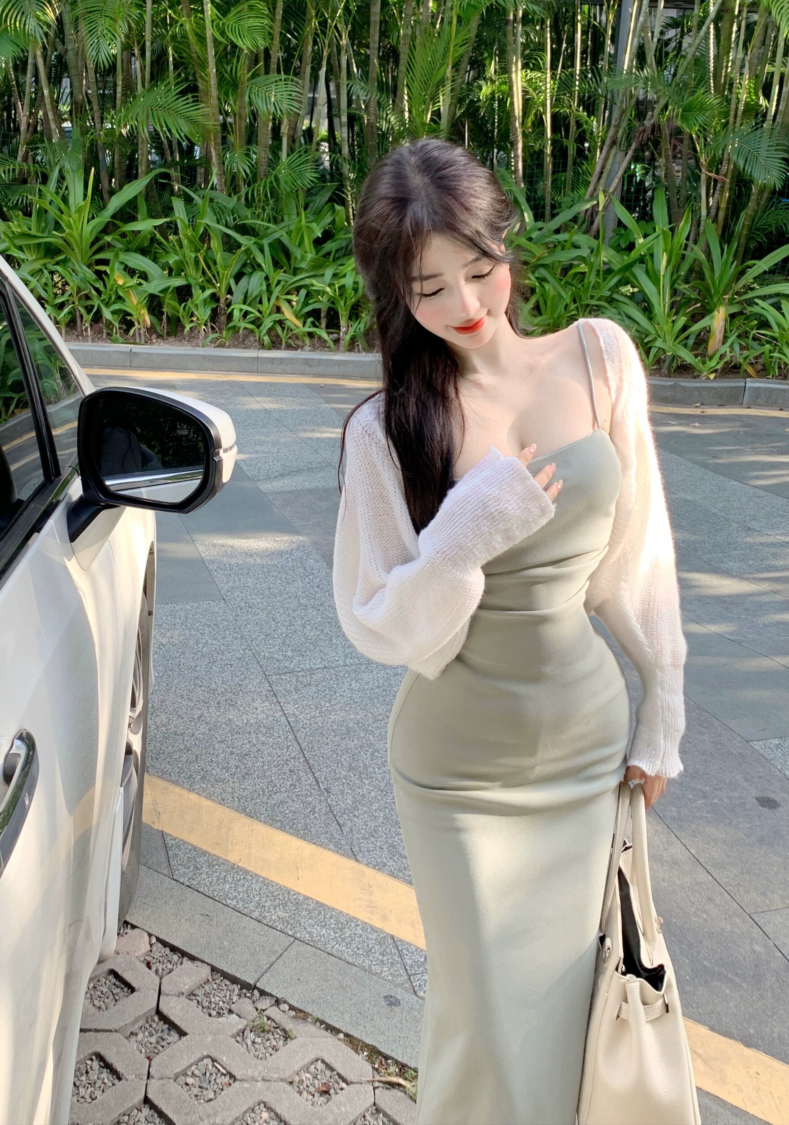 サスペンダードレスの女性の夏の 2023 新しい純粋な欲望ハイエンドのクールなスタイルのタイトなヒップハグロングスカート サマー 夏物 ピュア 8571665715402241
