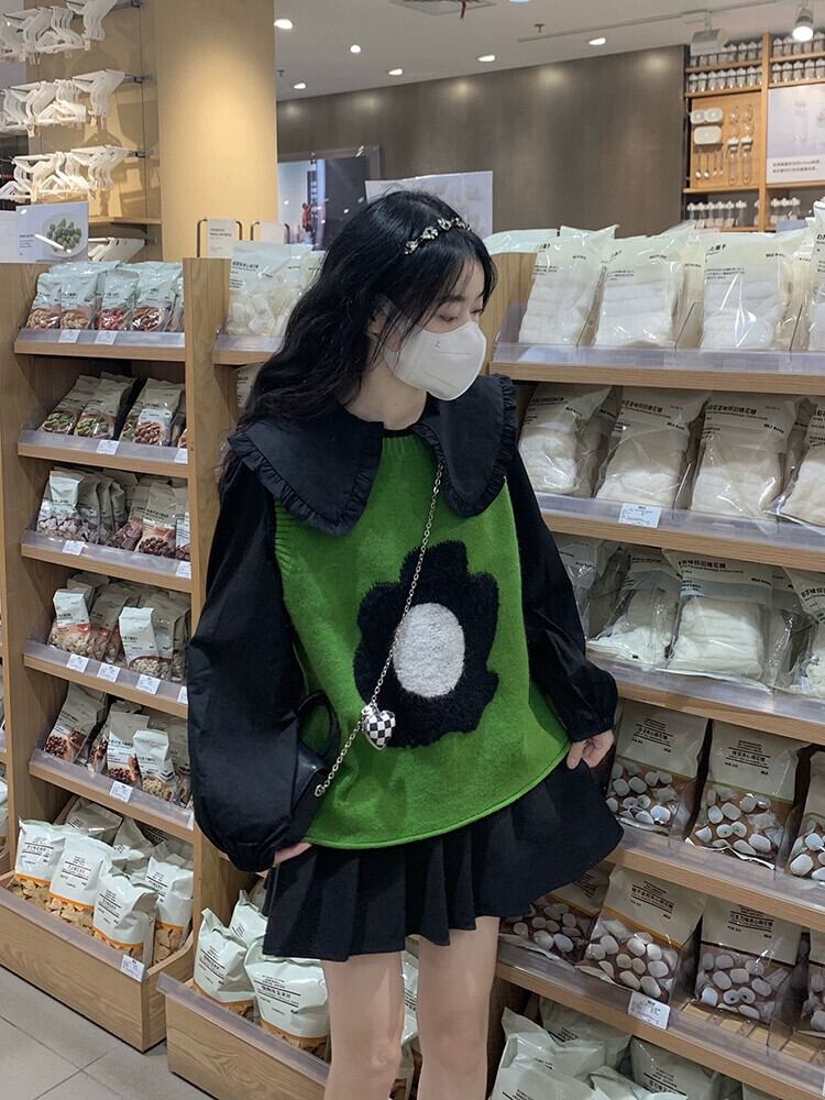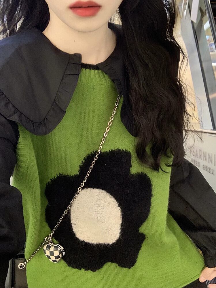 ニッチなデザインのグリーンニットベスト女性秋アウターレイヤリングセーターベストチョッキ ese インターネットセレブベスト 8571698455881396