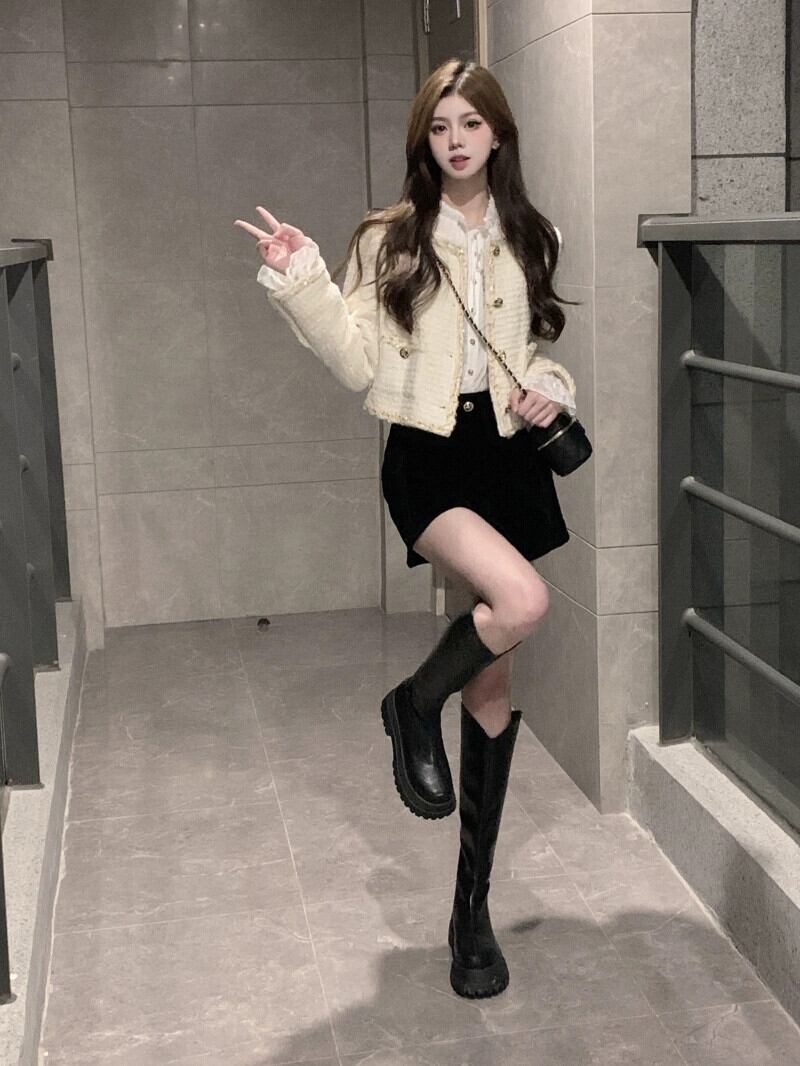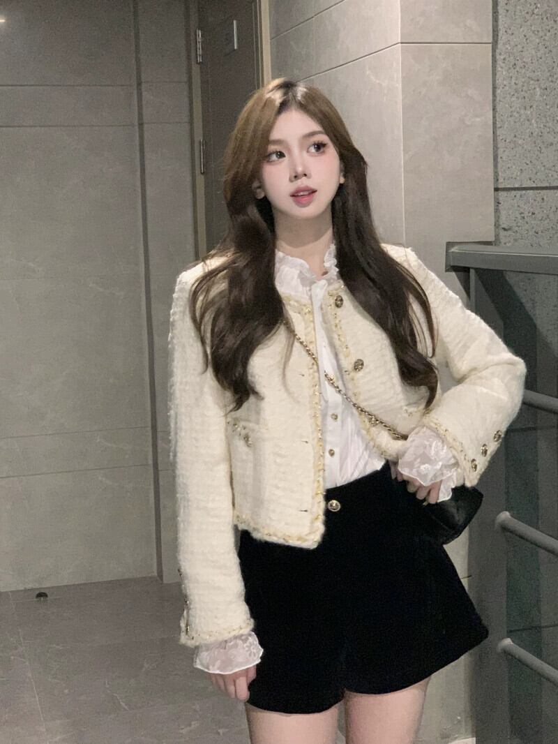ベージュの小さな香りのスタイルのショートコート、フェミニンで社交的なデザイン、ニッチな秋冬、小さくて高級なトップス オータム 秋物 ウィンター 冬物 857161580813054
