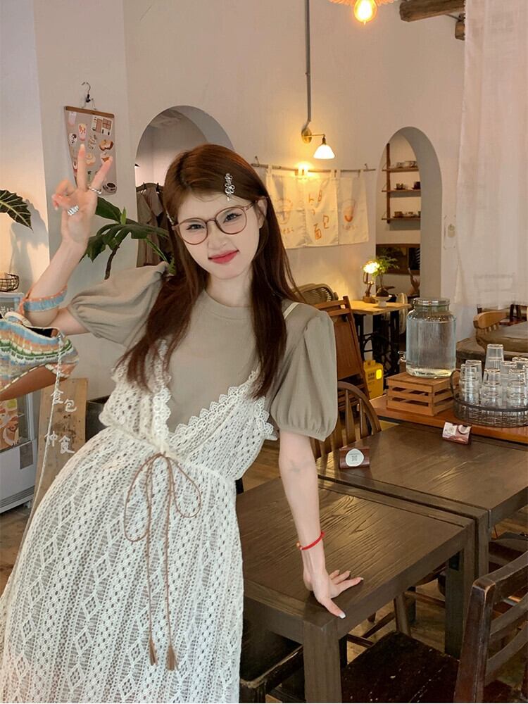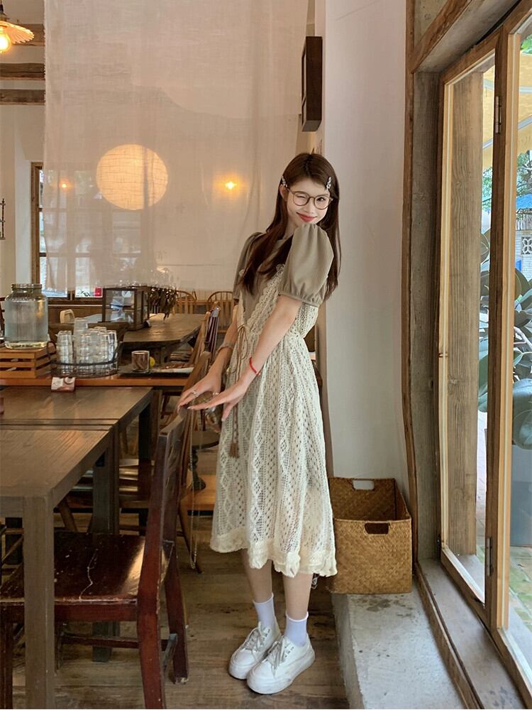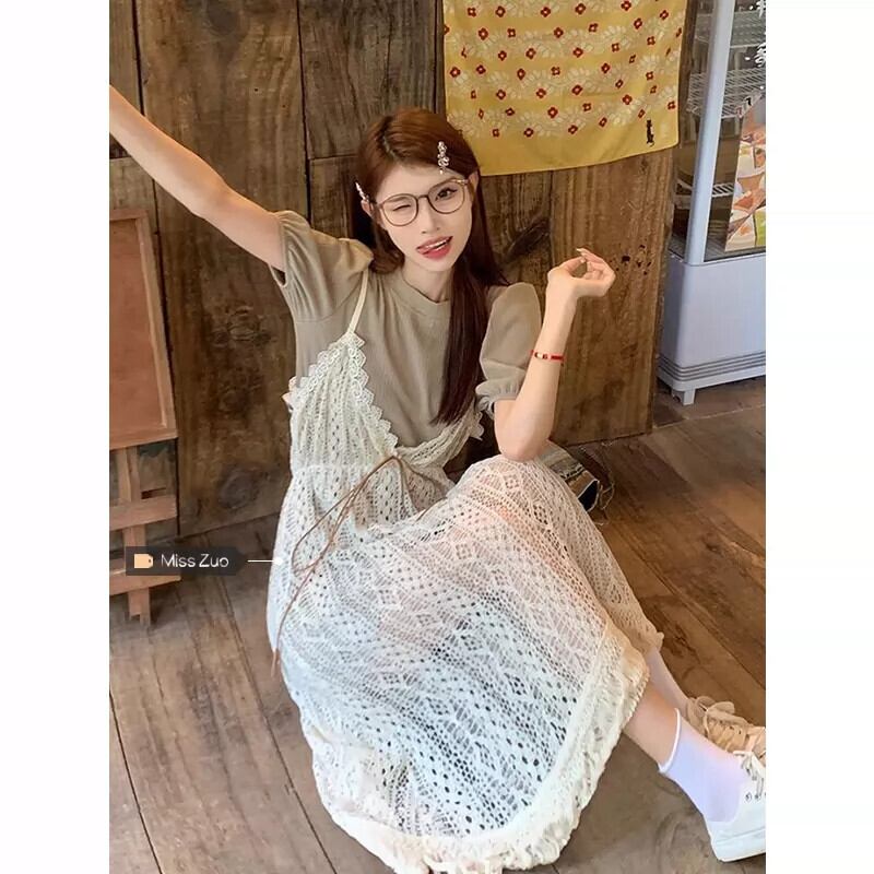 レースサスペンダードレス女性の夏の新しい海辺の休暇ボヘミアンスタイルレイヤードテルロングスカートスーツ レッド サマー 夏物 8571674193609548