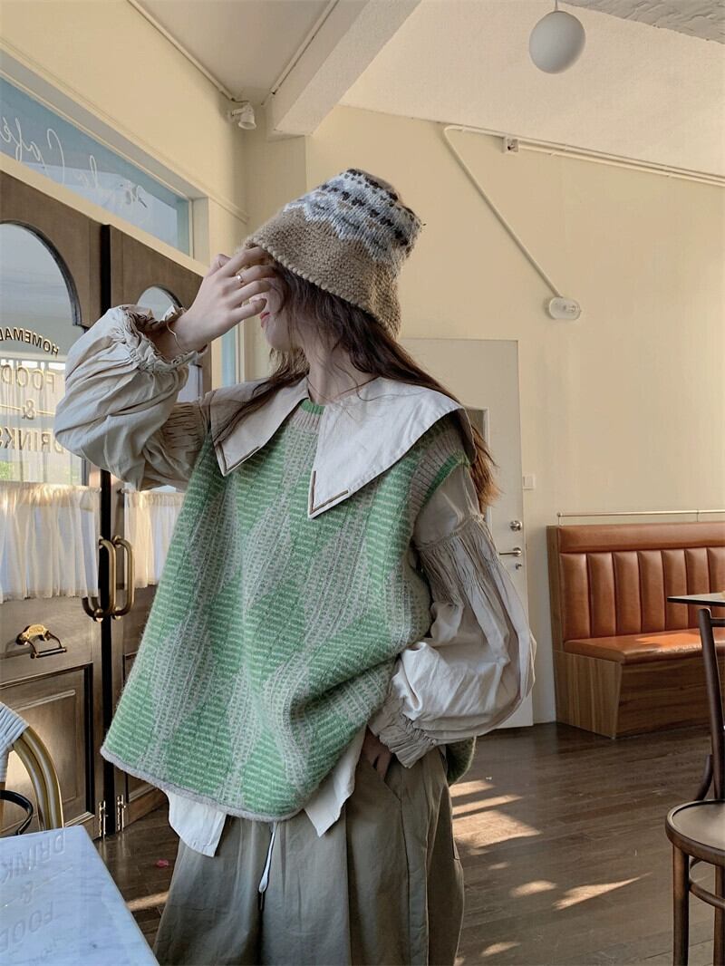 ニットベスト女性のルーズレイジースタイルセーターベスト秋 2023 スタイルシャツオーバーレイ着用チョッキベスト オータム 秋物 8571680419157684