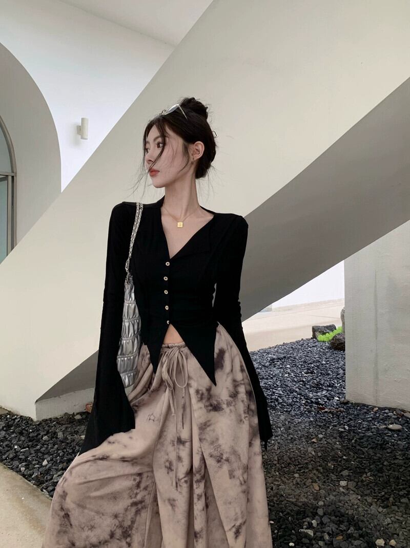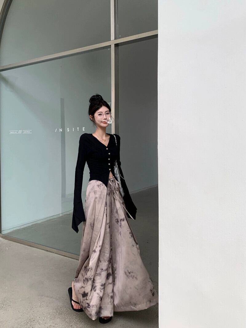 インク汚れキュロット女性の夏の新しいハイウエストドレープワイドレッグパンツ新しい中国風国民風カジュアルフロアレングスズボン サマー 夏物 8571699049050271