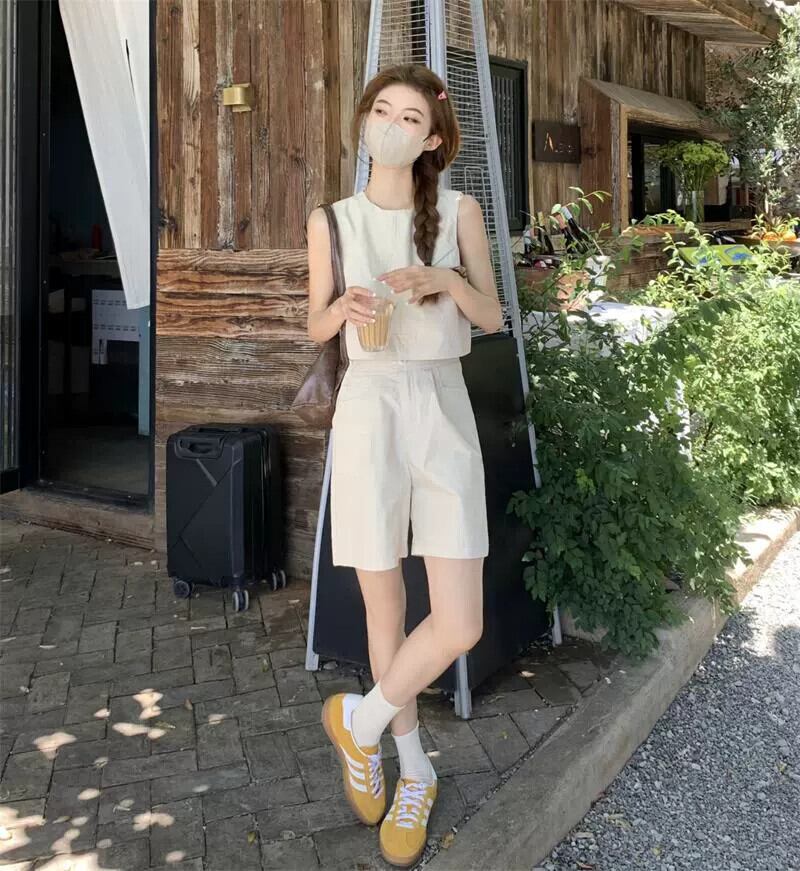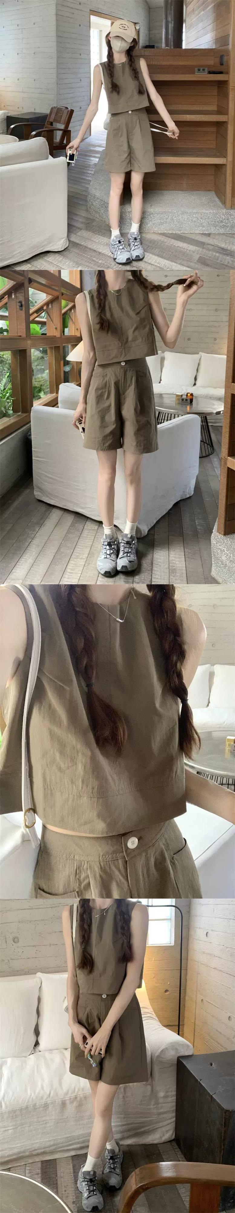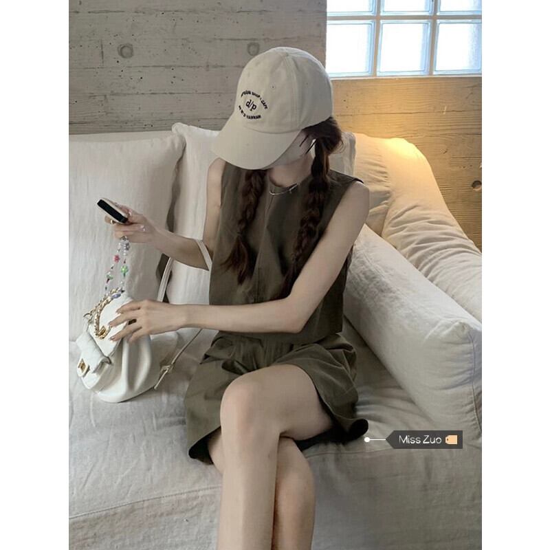 コーヒー色のノースリーブベストの女性の夏のアウターウェア 2023 新しいシックでシックな万能ショートトップ小人 サマー 夏物 8571622845880042