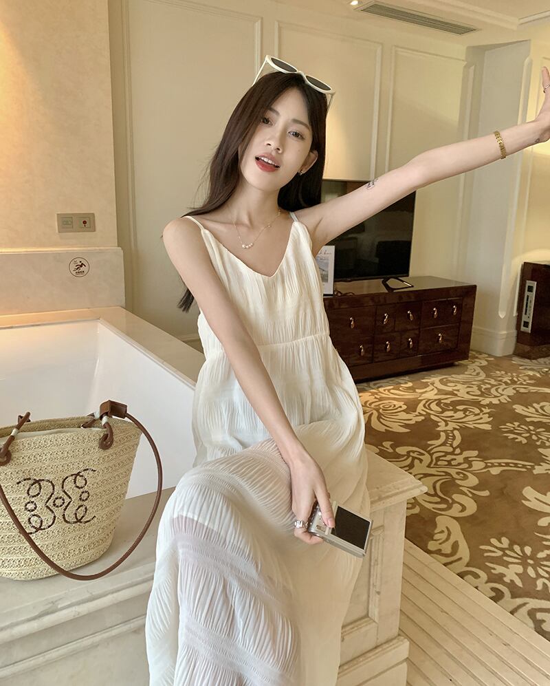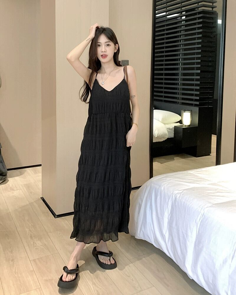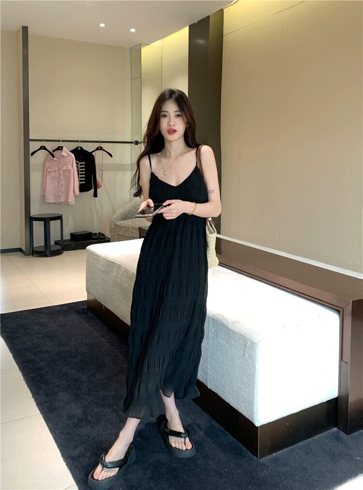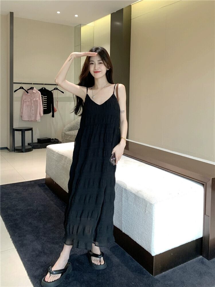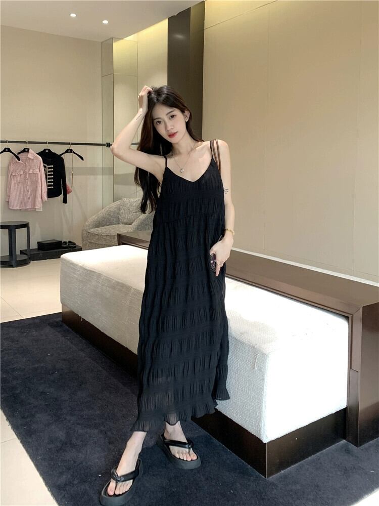 黒サスペンダードレスの女性の夏 2023 新しいスタイル優しいスタイルのハイエンドデザインニッチロングスカート ブラック サマー 夏物 8571684196535917