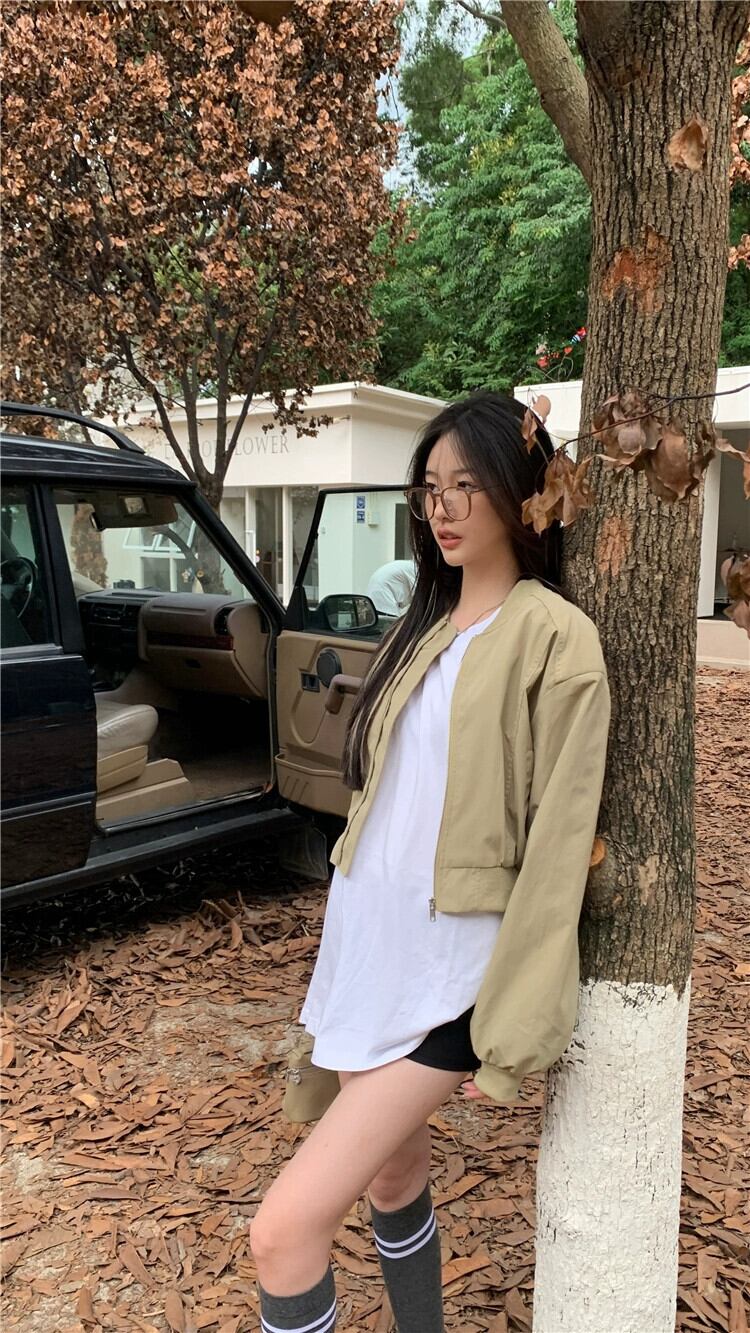 カーキベースボールジャケットレディース2023年初秋新スタイルアメリカンレトロスモールショートジャケット オータム 秋物 8571651302220059