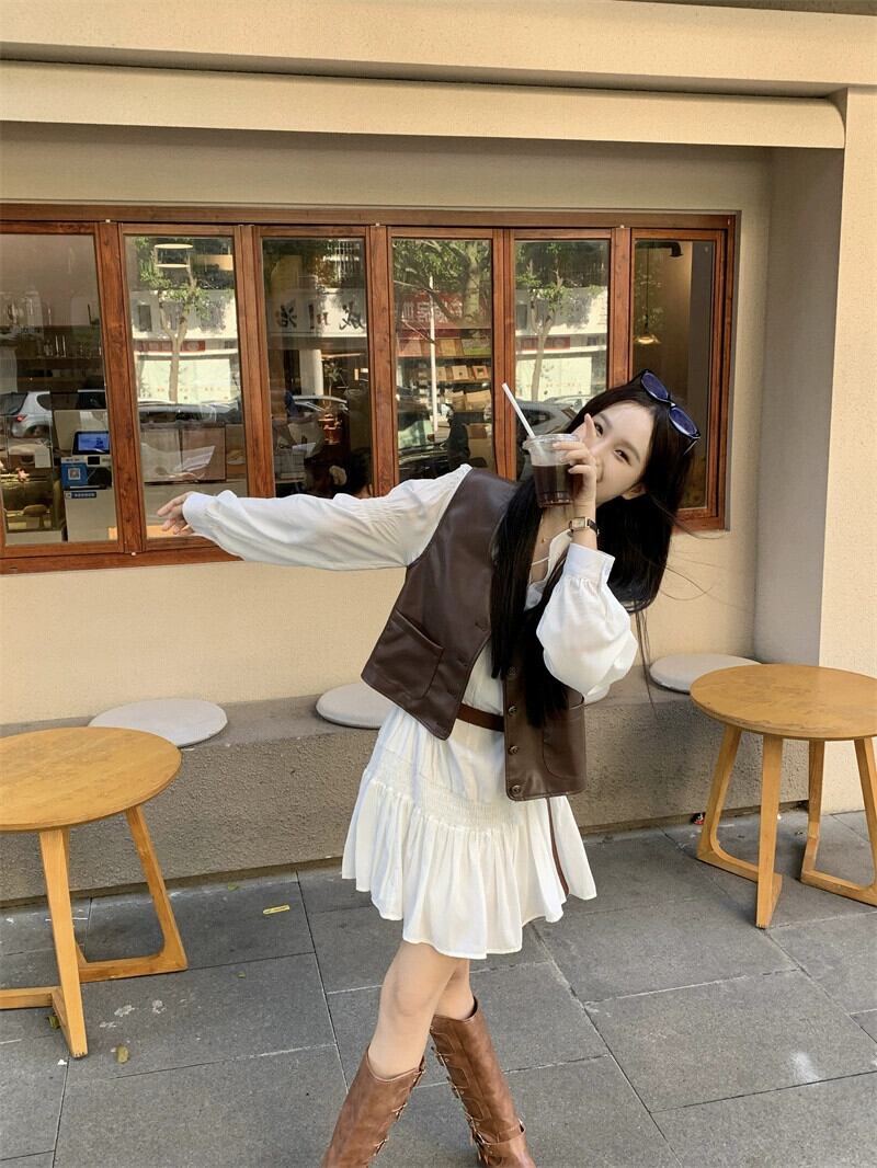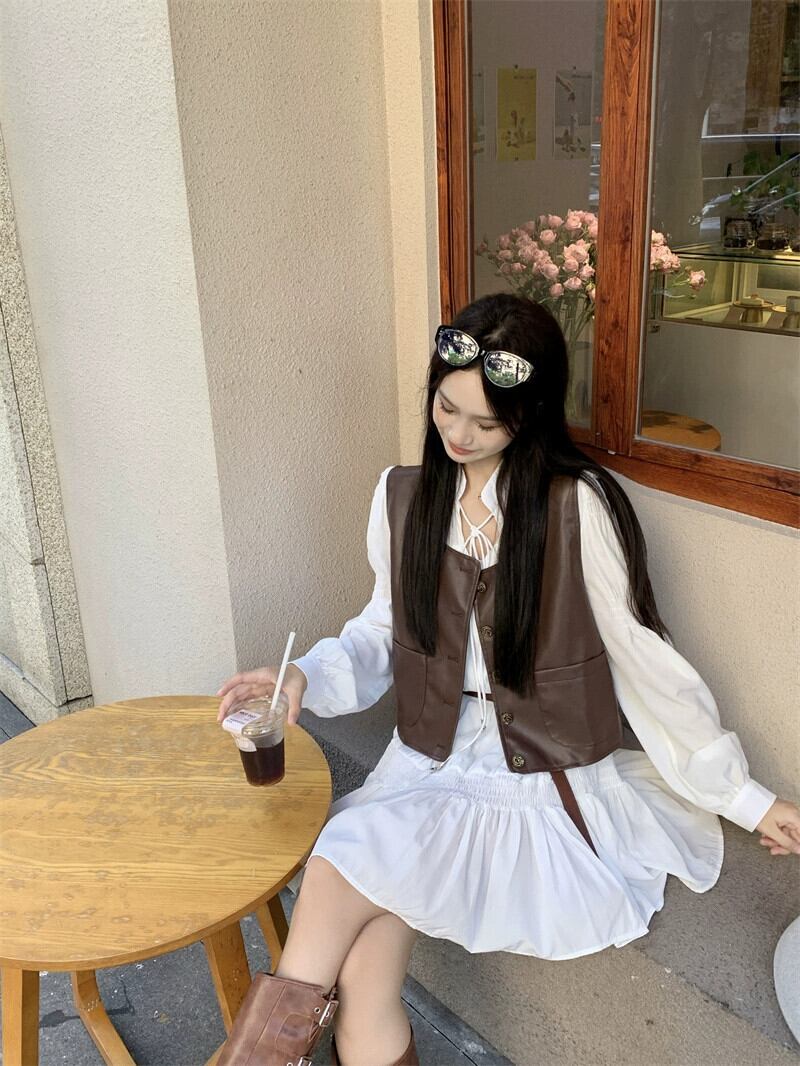 PU レザーベストジャケット女性 2023 初秋の新マッチングドレスチョッキインターネット有名人人気のショートベスト オータム 秋物 8571631530875012