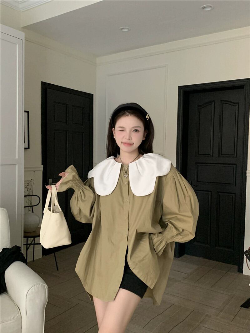 花びらドールカラートップ女性の 2023 秋フレンチレトロ甘いルーズレイジースタイル長袖シャツ ロング 大人ガーリー スウィート キュート カジュアル オータム 秋物 8571654426230292