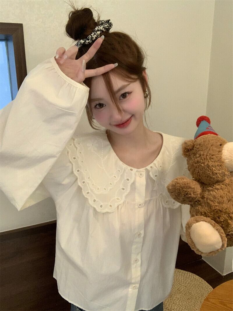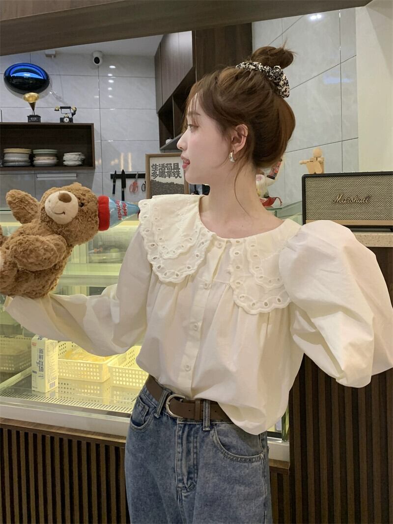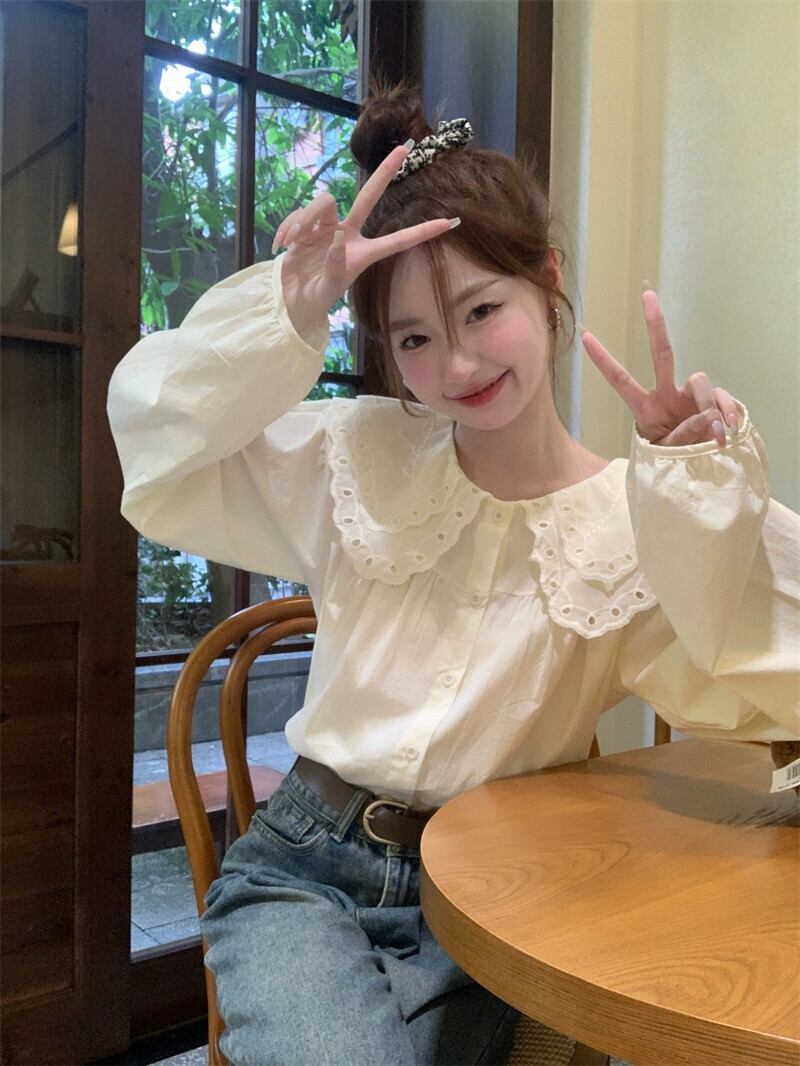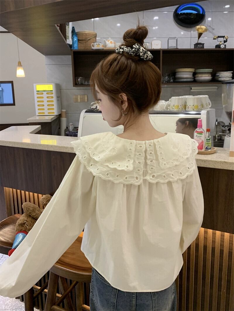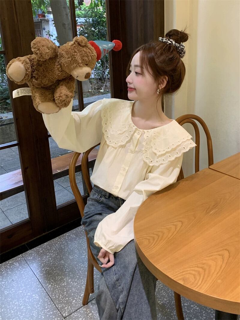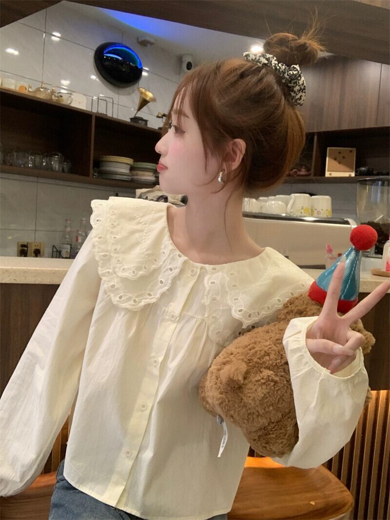 二層ドールカラーシャツレディース2023初秋新作純粋で甘いフレンチスタイルの美しい小さな長袖トップ ロング 大人ガーリー スウィート キュート カジュアル オータム 秋物 ピュア 8571664797058248