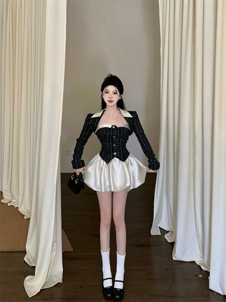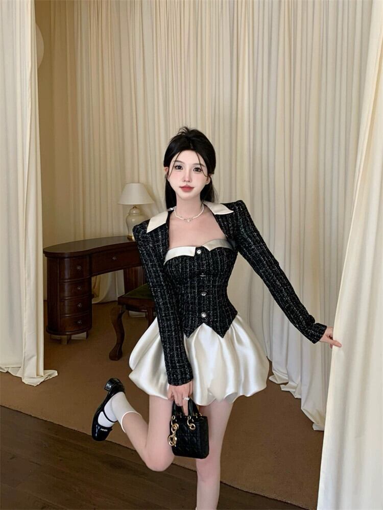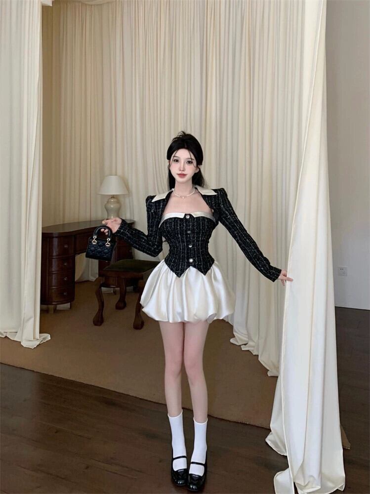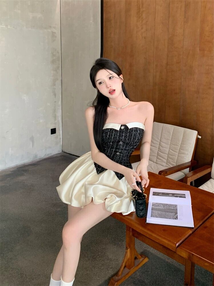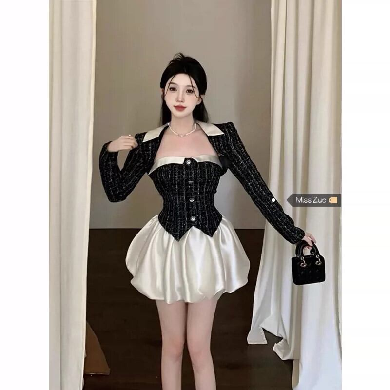 Xiaoxiangfeng チューブトップドレス女性秋の新しいスタイルのフランスの社交界のハイエンドの超格好良いふくらんでいるショートスカートスーツ オータム 秋物 8571616489268124