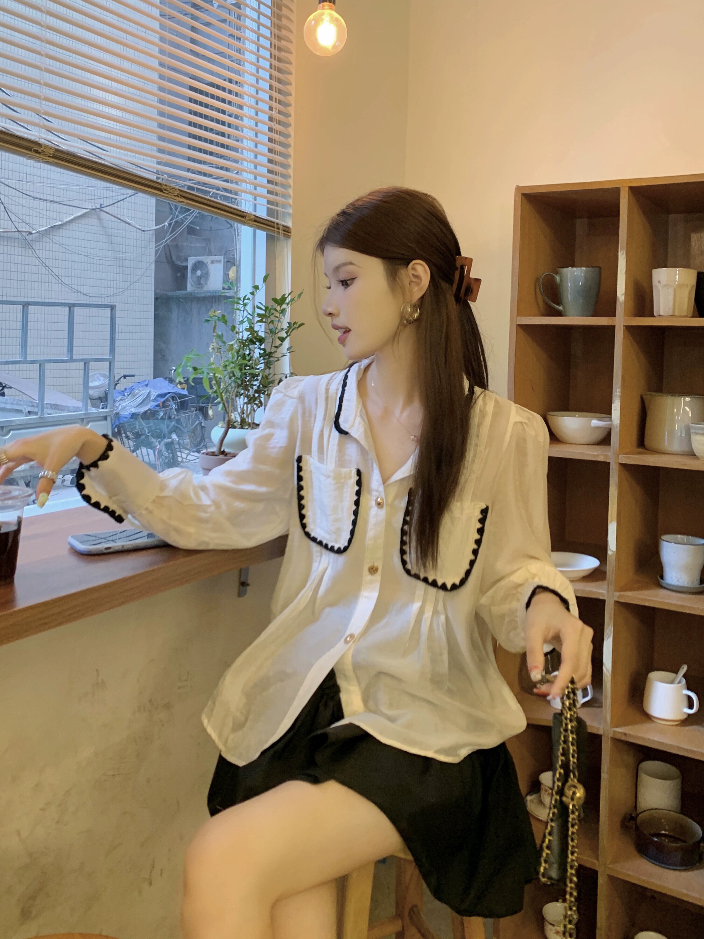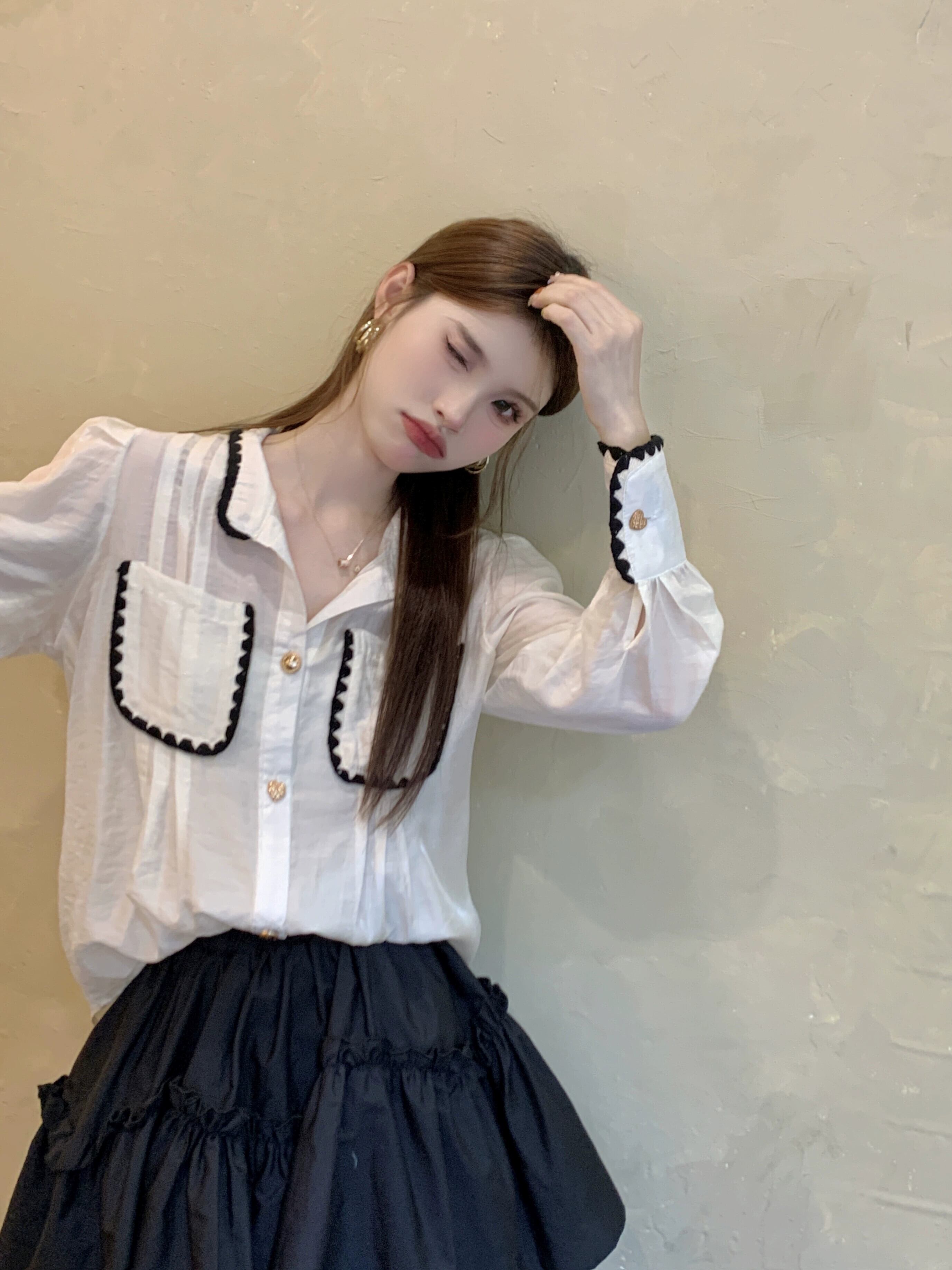 フレンチスタイルシャツレディース2023初秋新作白シャツ優しい気質の高級長袖トップ ロング ホワイト オータム 秋物 857165252442110