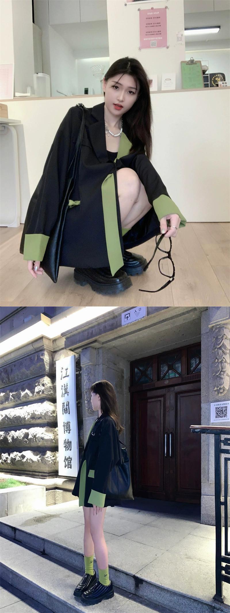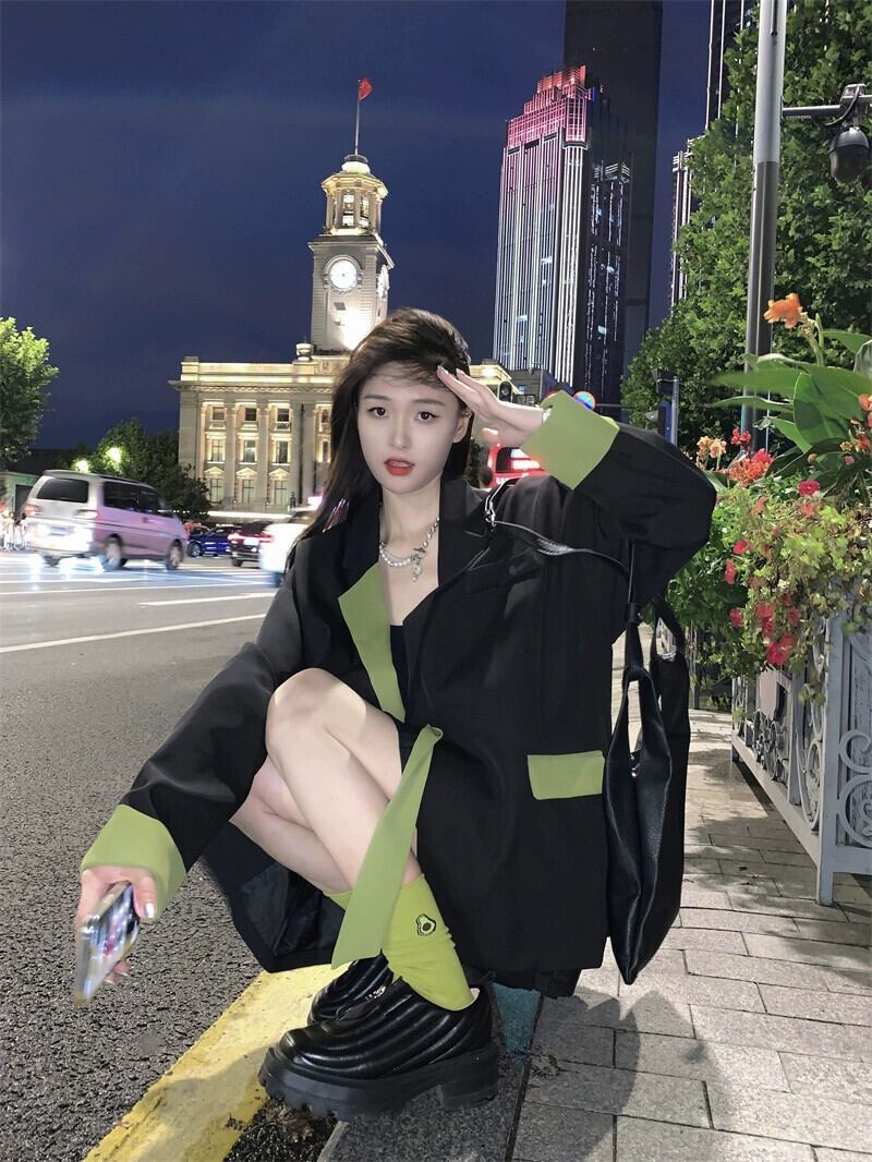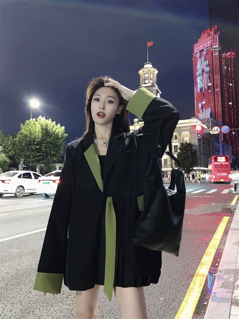 コントラストカラーブレザー女性のハイエンドデザインニッチ2023初秋の新しいオーバーサイズストリートカジュアルスーツ オータム 秋物 8571639796319294